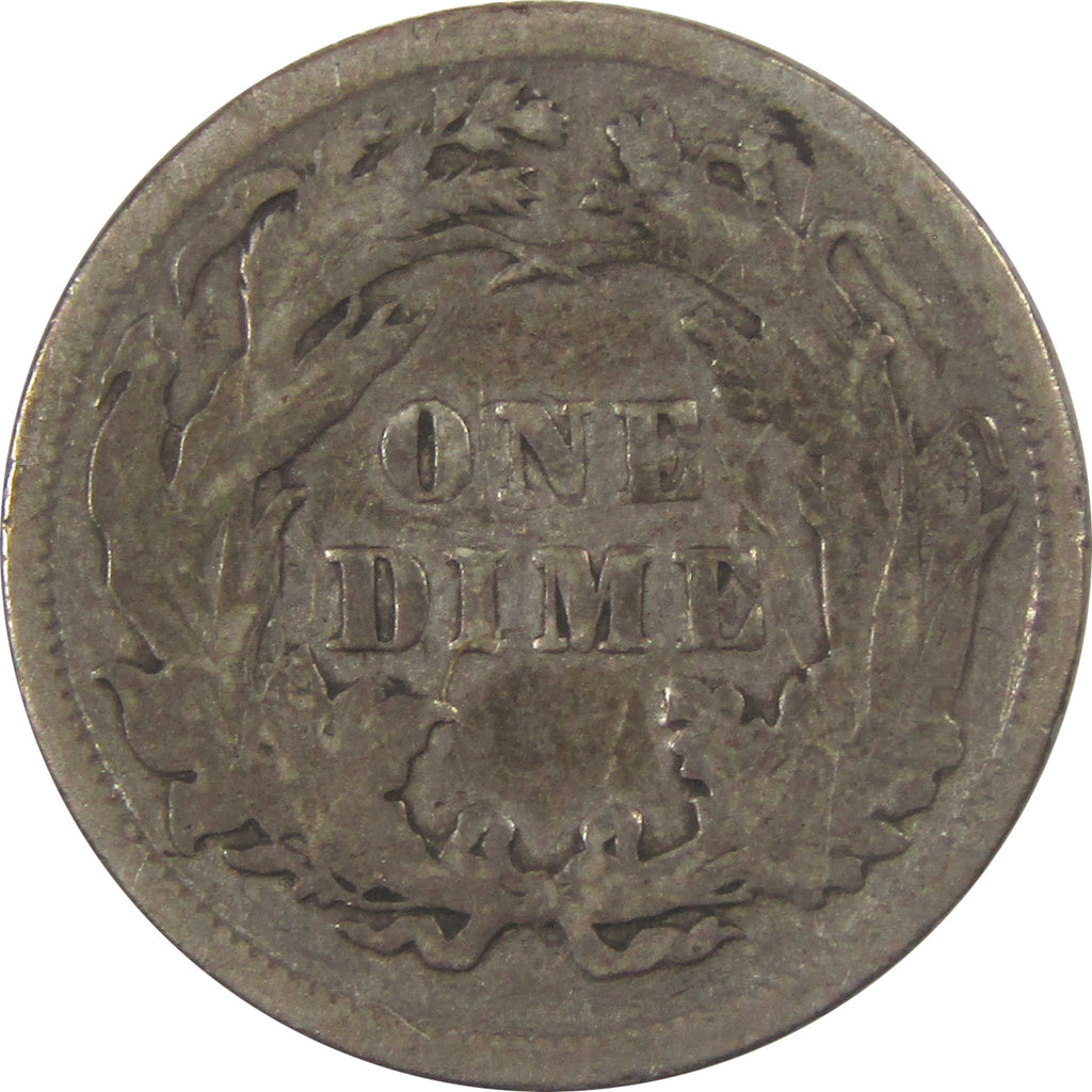 Designed by Christian Gobrecht, this 90% silver dime depicts Liberty seated on a rock, holding a shield in her right hand and a Liberty cap on a pole in her left. The reverse displays a wreath, the denomination and UNITED STATES OF AMERICA.