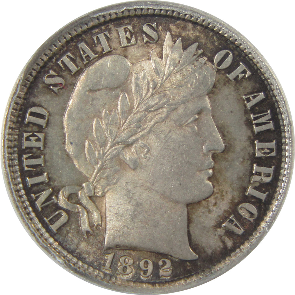 A genuine 1892 Barber Silver Dime Coin, graded and certified MS 63 by ANACS. Contains 90% Silver
