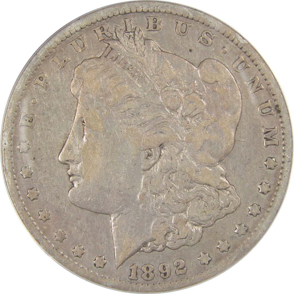 A genuine 1892 CC Morgan Silver Dollar Coin, graded and certified F 15 Details by ANACS. Contains 90% Silver. Cleaned