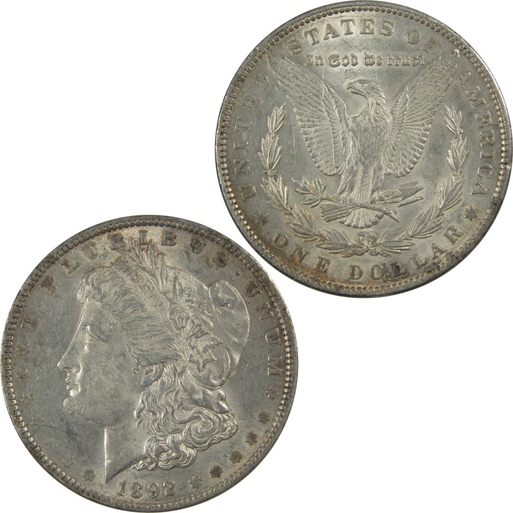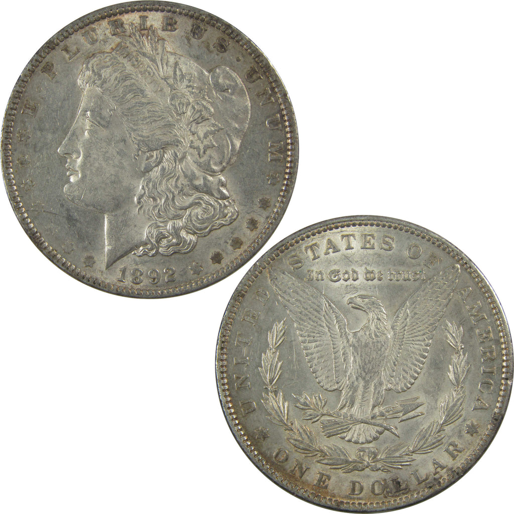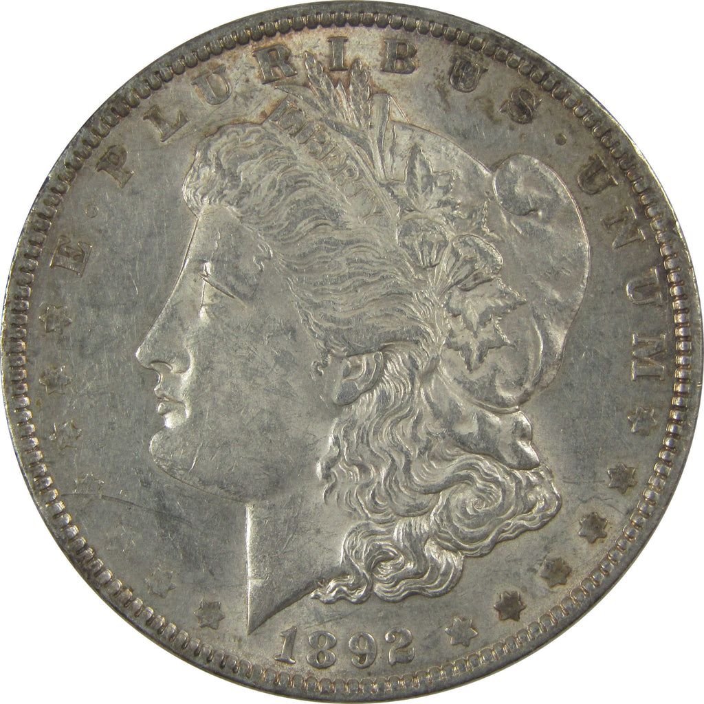 A genuine 1892 Morgan Silver Dollar Coin, in AU About Uncirculated Condition. Contains 90% Silver