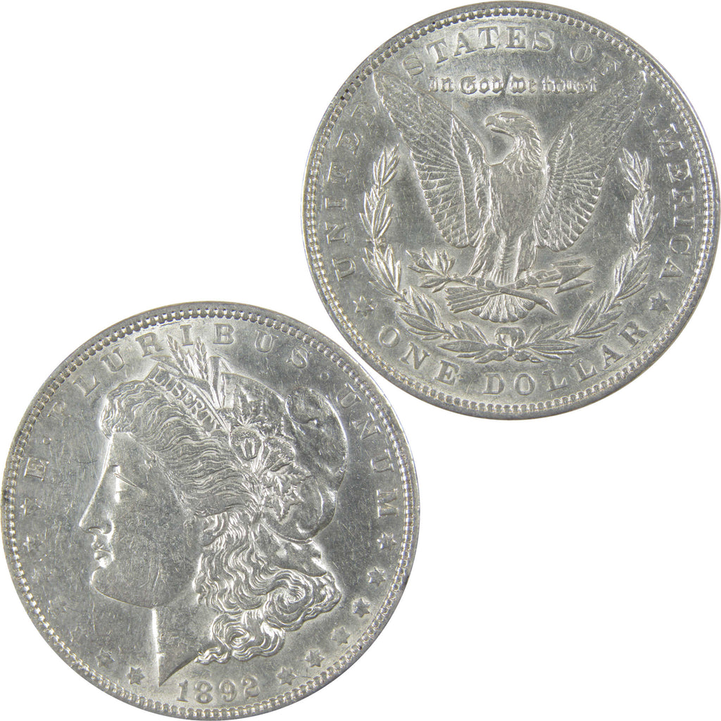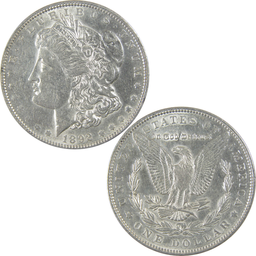 A genuine 1892 Morgan Silver Dollar Coin, in AU About Uncirculated Condition. Contains 90% Silver