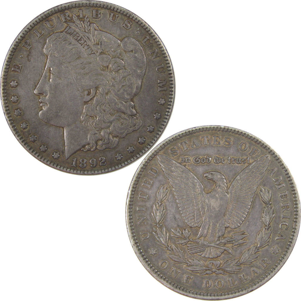 A genuine 1892 Morgan Silver Dollar Coin, in XF EF Extremely Fine Condition. Contains 90% Silver