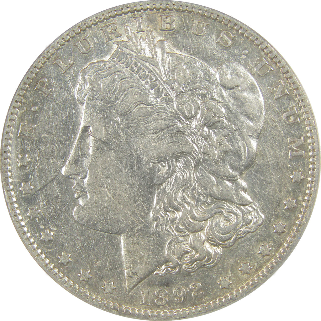 A genuine 1892 S Morgan Silver Dollar Coin, graded and certified EF 40 Details by ANACS. Contains 90% Silver. Scratched, Cleaned
