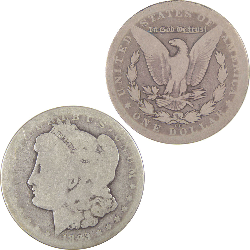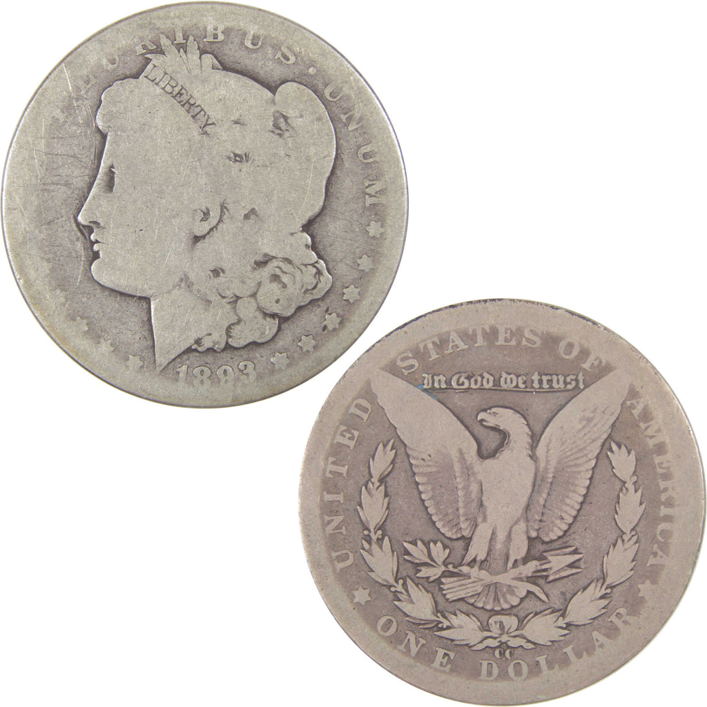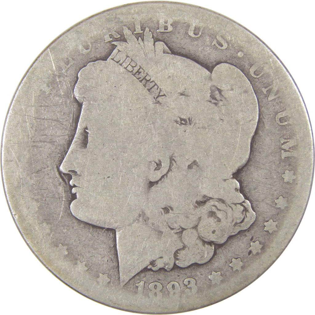 A genuine 1893 CC Morgan Silver Dollar Coin, in AG About Good Condition. Contains 90% Silver