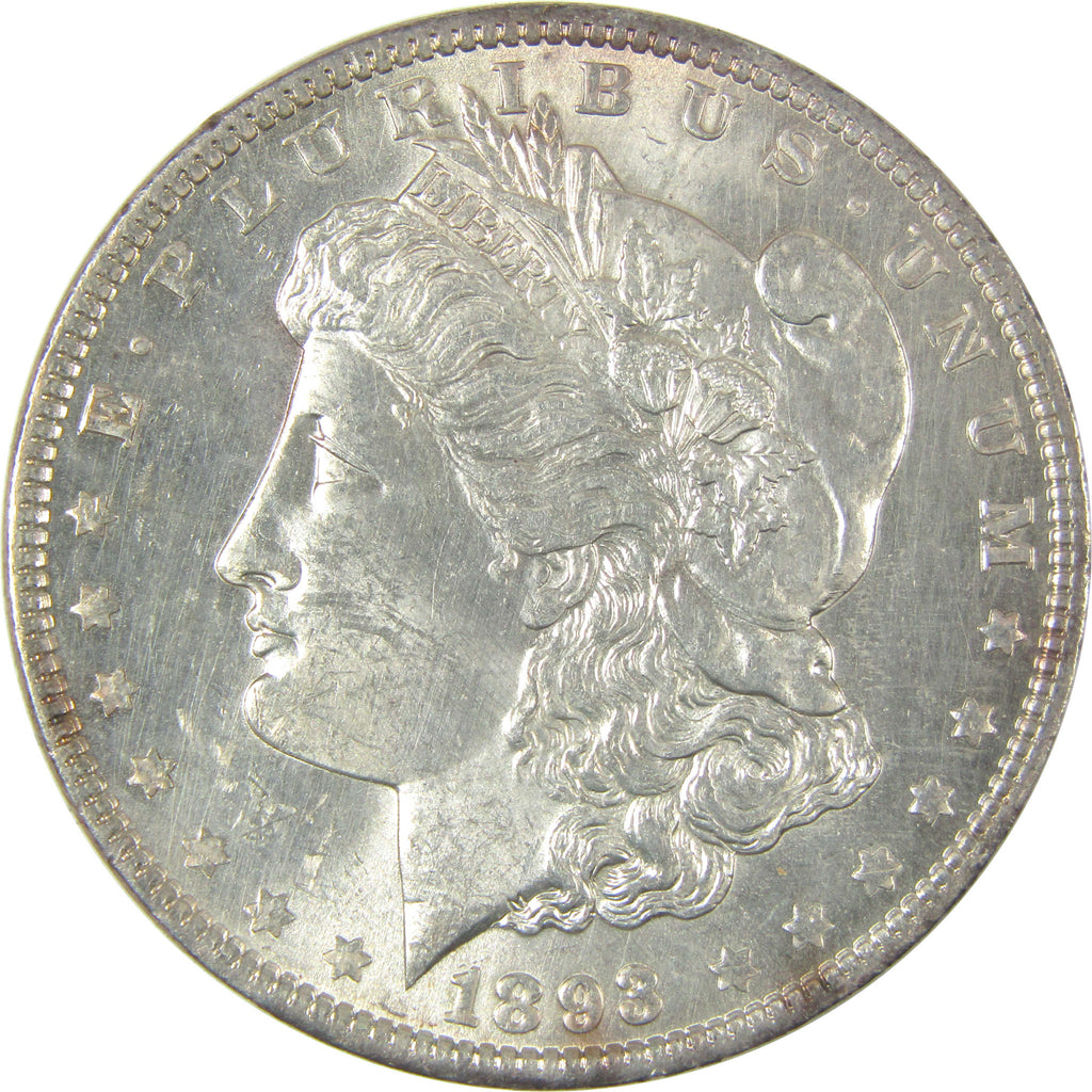 A genuine 1893 Morgan Silver Dollar Coin, in Uncirculated Details Condition. Contains 90% Silver. Obverse Hairlines