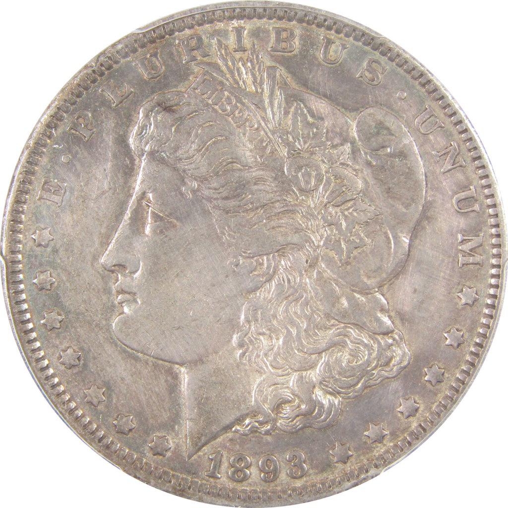 A genuine 1893 Morgan Silver Dollar Coin, graded and certified XF Details by PCGS. Contains 90% Silver. Cleaned