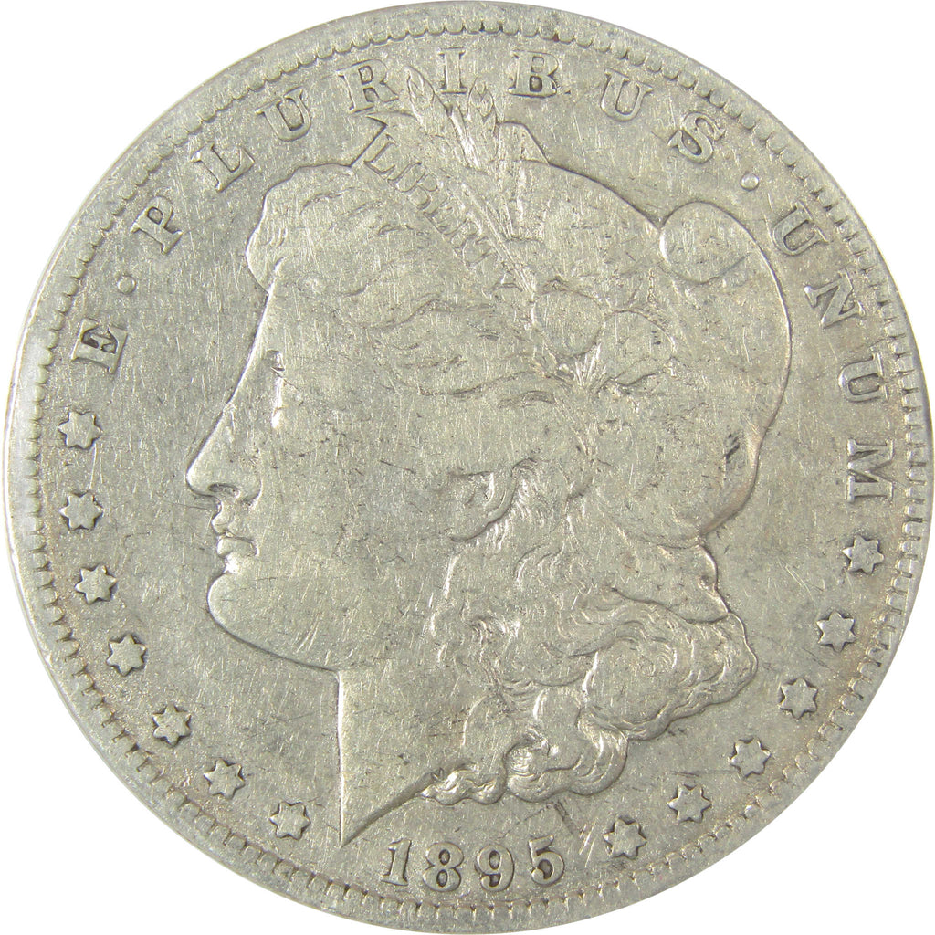A genuine 1895 S Morgan Silver Dollar Coin, graded and certified F 12 by ANACS. Contains 90% Silver
