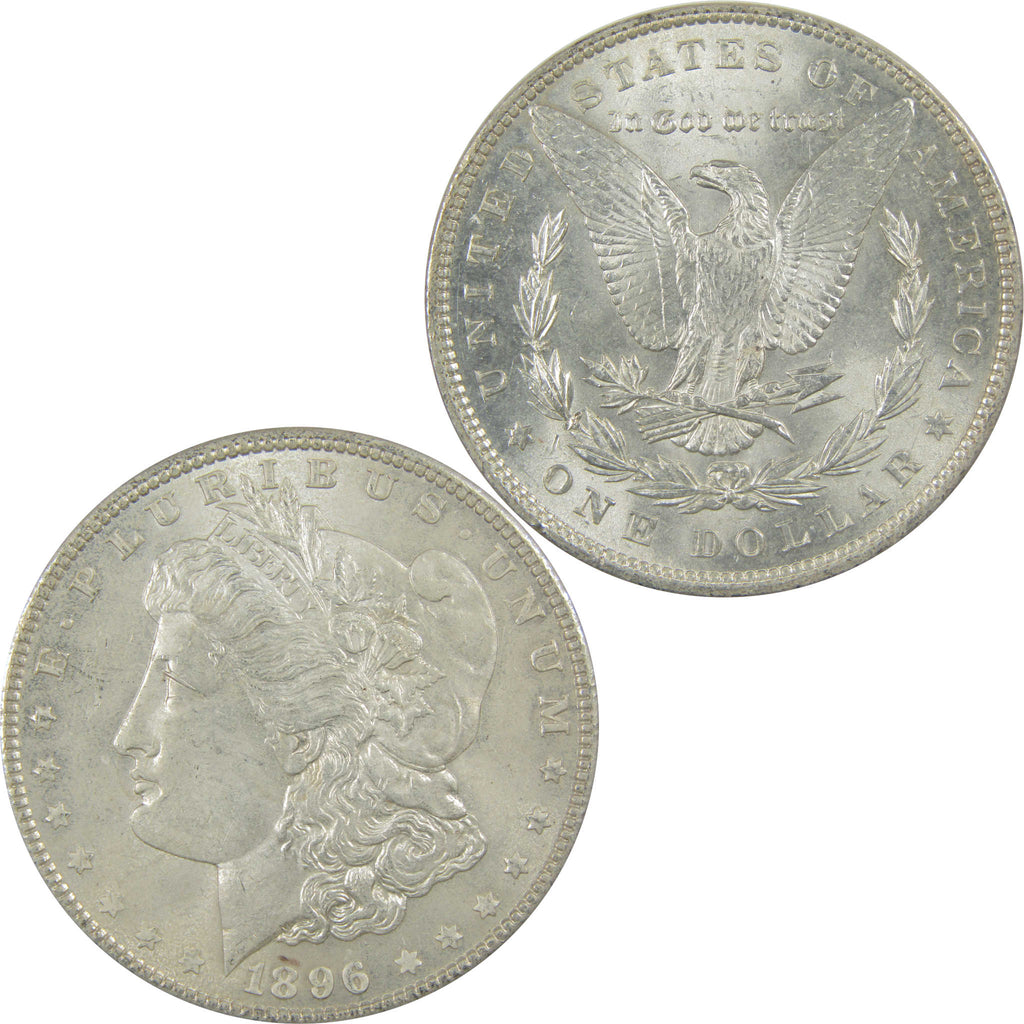 A genuine 1896 Morgan Silver Dollar Coin, in Uncirculated Details Condition. Contains 90% Silver. Environmental Damage