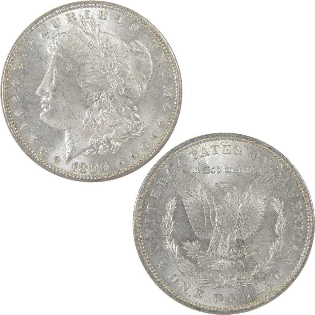 A genuine 1896 Morgan Silver Dollar Coin, in Uncirculated Mint State Condition. Contains 90% Silver