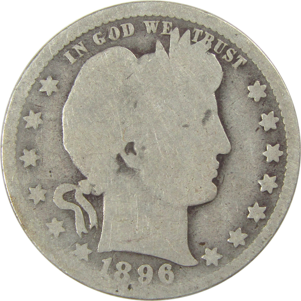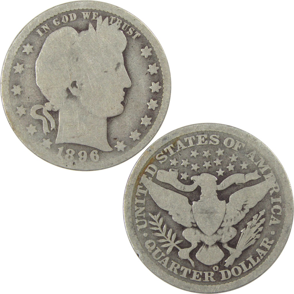 A genuine 1896 O Barber Silver Quarter Coin, in AG About Good Condition. Contains 90% Silver