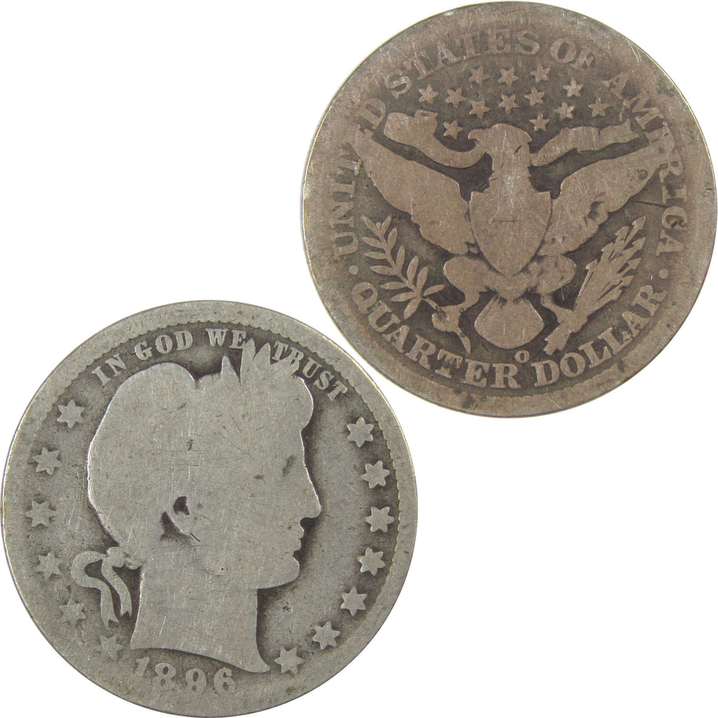 A genuine 1896 O Barber Silver Quarter Coin, in AG About Good Condition. Contains 90% Silver