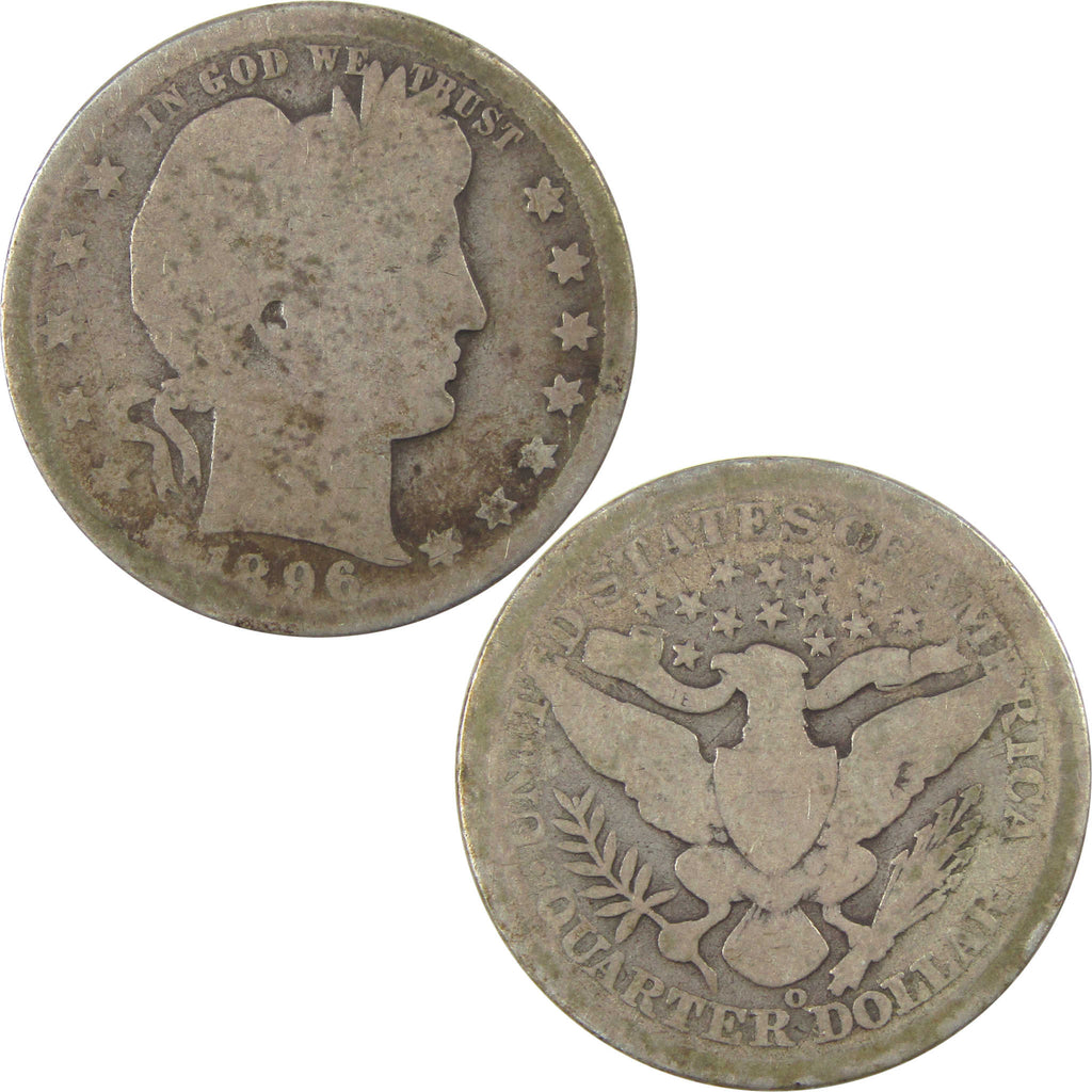 A genuine 1896 O Barber Silver Quarter Coin, in AG About Good Condition. Contains 90% Silver