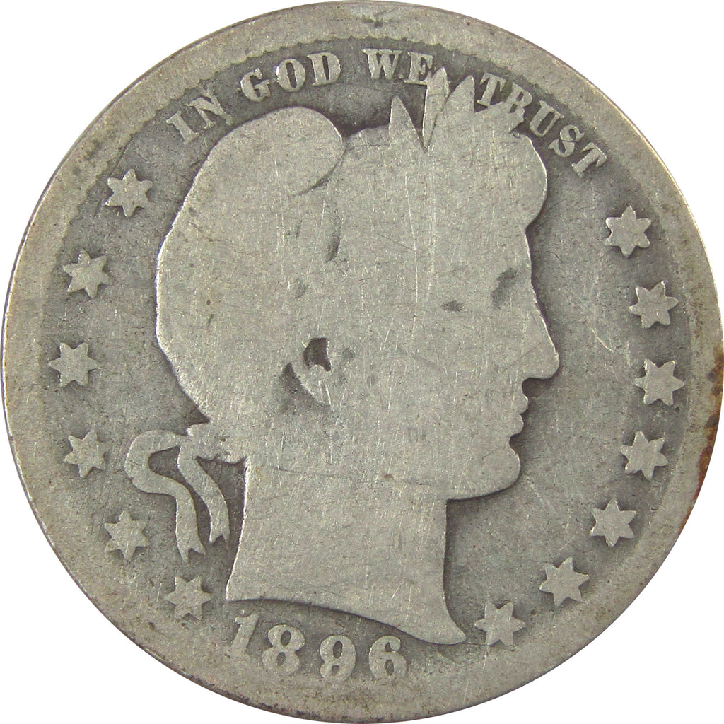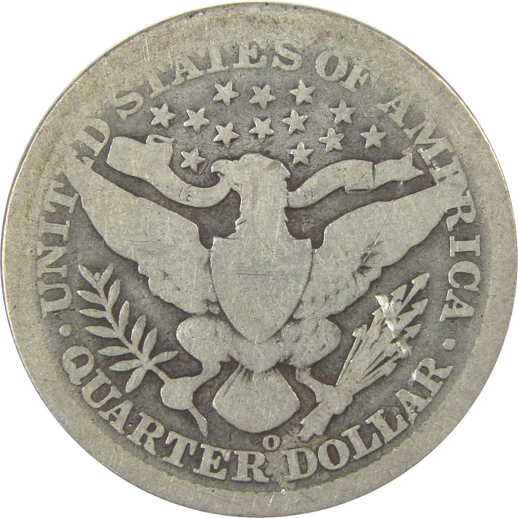 A genuine 1896 O Barber Silver Quarter Coin, in AG About Good Condition. Contains 90% Silver