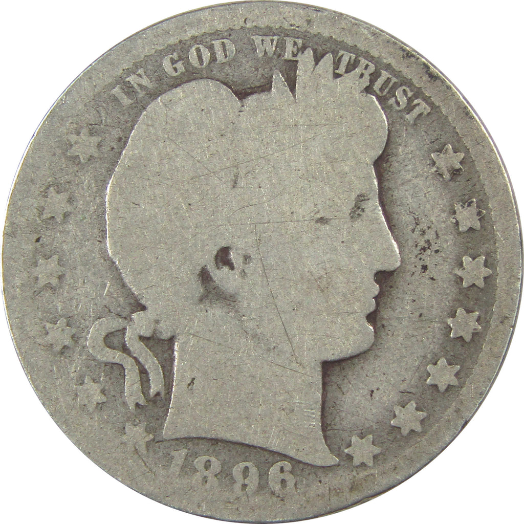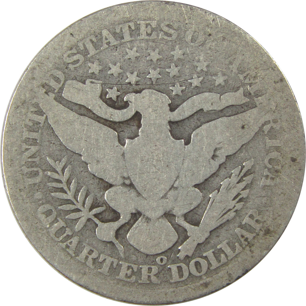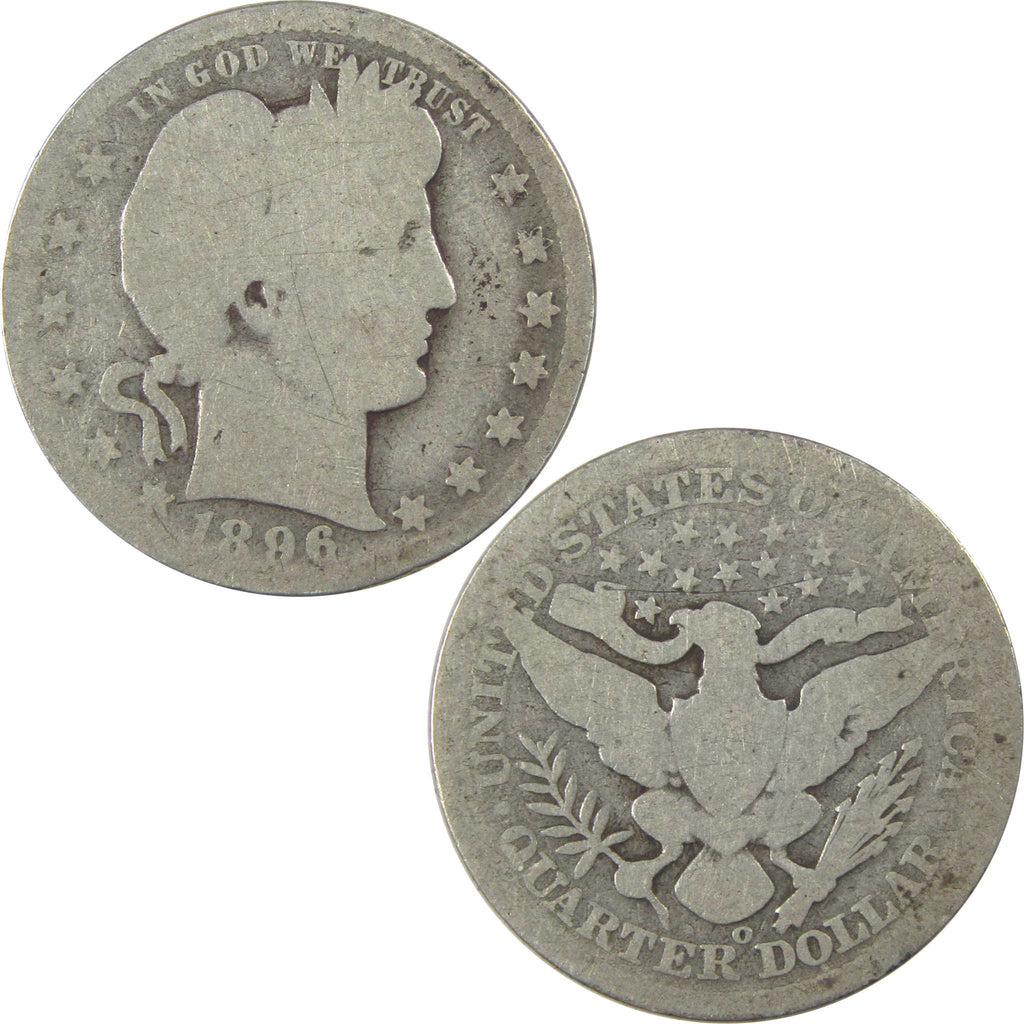 A genuine 1896 O Barber Silver Quarter Coin, in AG About Good Condition. Contains 90% Silver