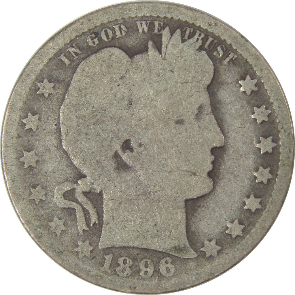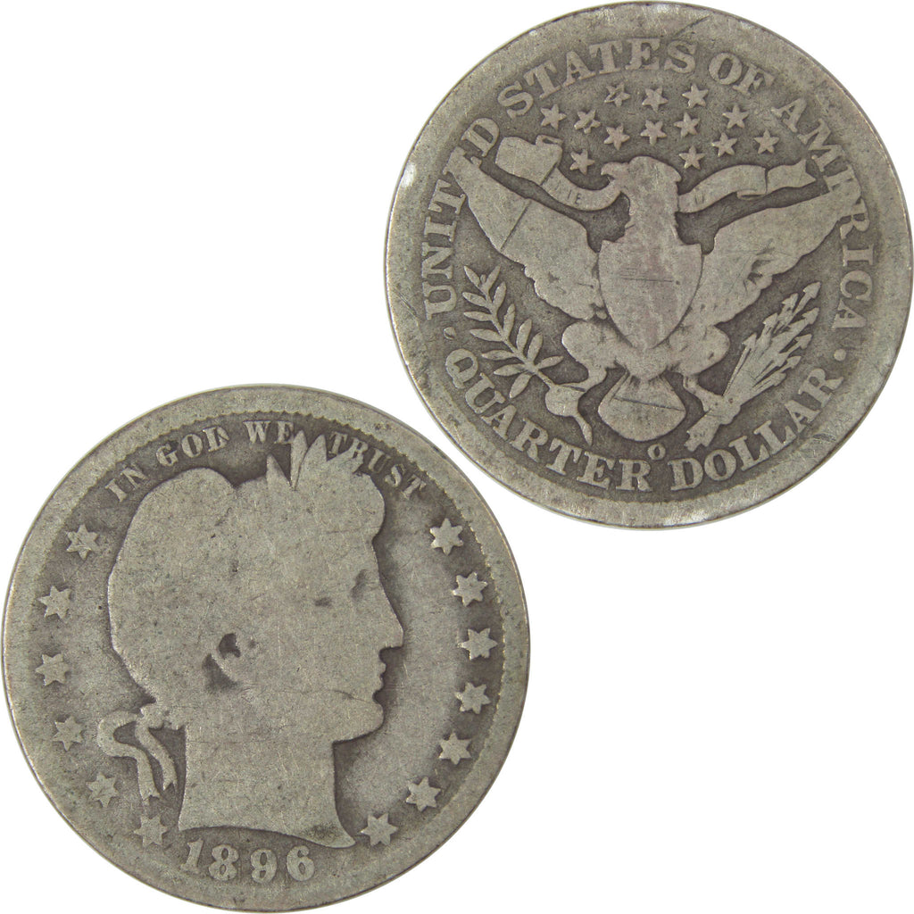 A genuine 1896 O Barber Silver Quarter Coin, in AG About Good Condition. Contains 90% Silver