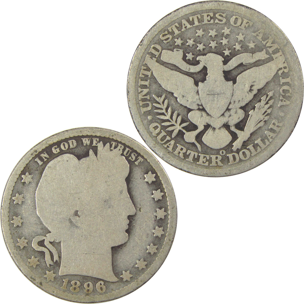 A genuine 1896 O Barber Silver Quarter Coin, in G Good Condition. Contains 90% Silver