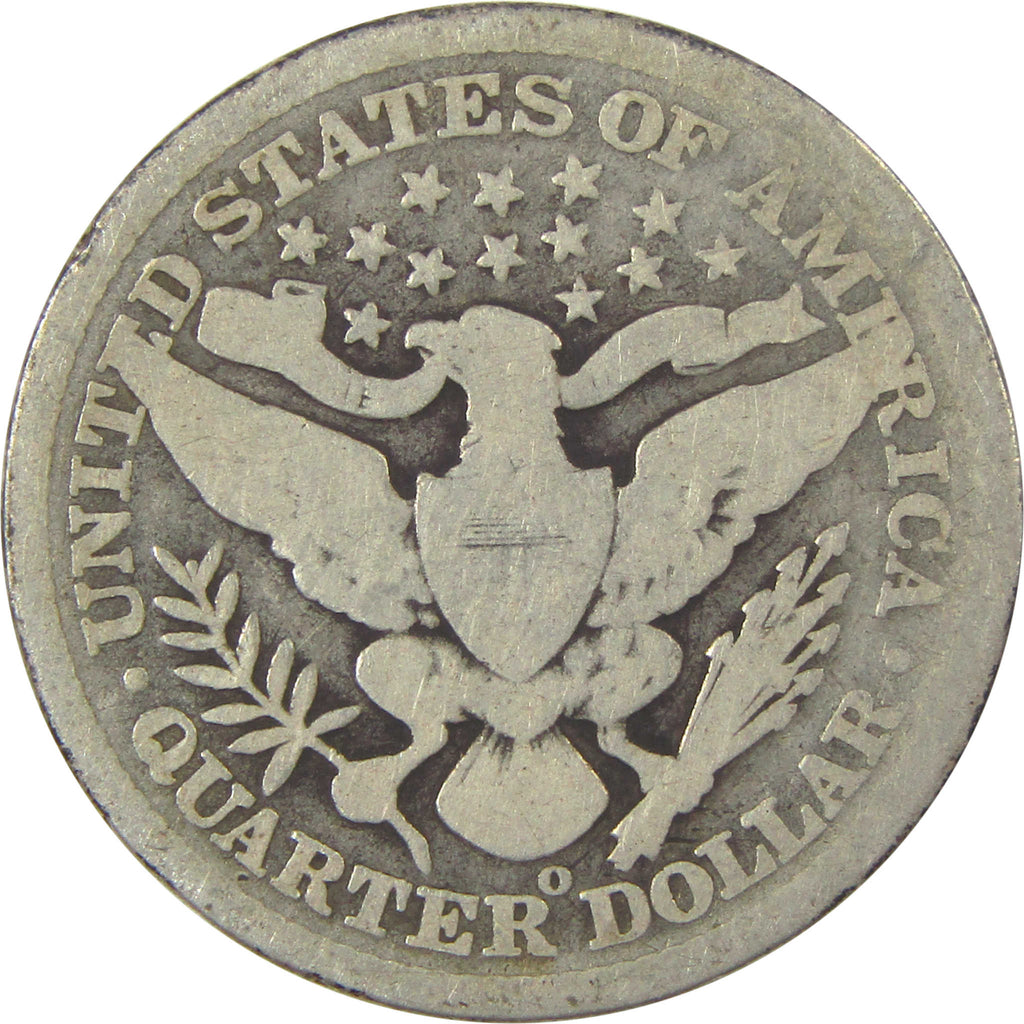 Designed by Charles E. Barber, this 90% silver Liberty Head quarter (or Barber quarter) depicts Liberty wearing a laurel wreath and Phrygian cap with a band inscribed LIBERTY. The reverse bears an adaptation of the Great Seal of the United States.