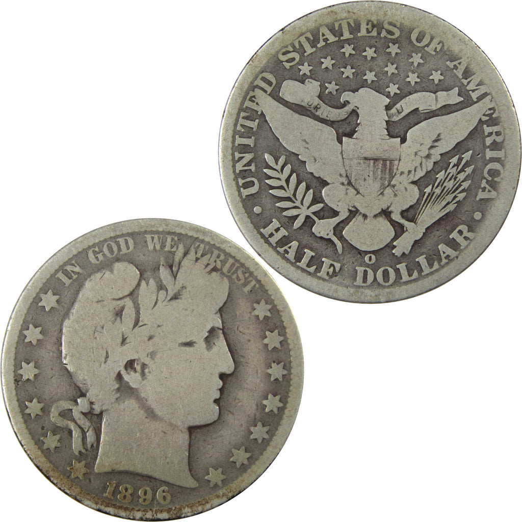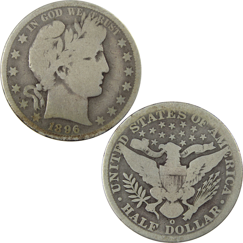 A genuine 1896 O Barber Silver Half Dollar Coin, in AG About Good Condition. Contains 90% Silver