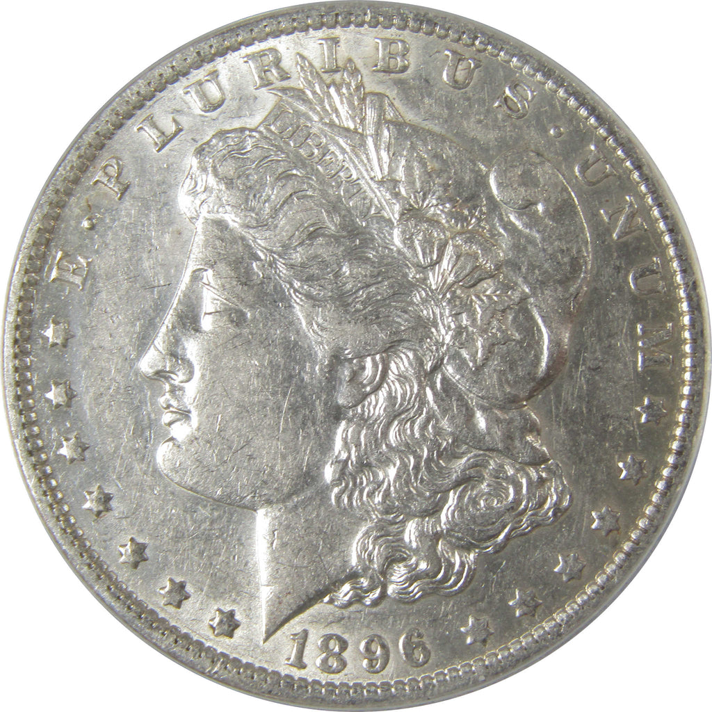 A genuine 1896 O Morgan Silver Dollar Coin, graded and certified AU 50 Details by ANACS. Contains 90% Silver. Cleaned