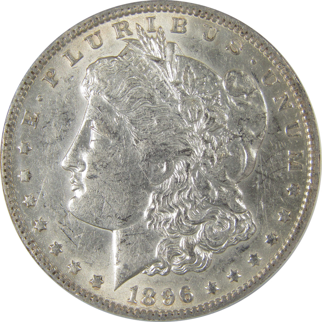 A genuine 1896 O Morgan Silver Dollar Coin, graded and certified AU 50 Details by ANACS. Contains 90% Silver. Cleaned