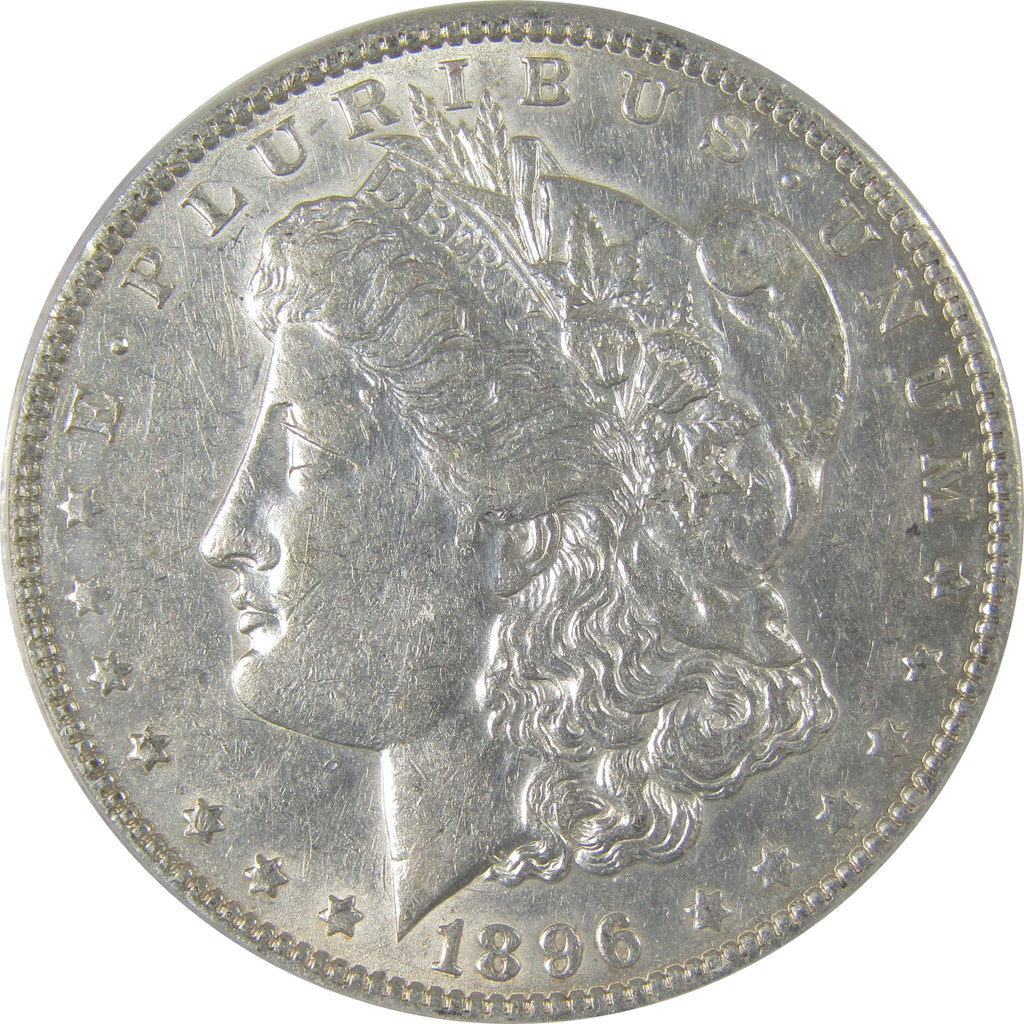 A genuine 1896 O Morgan Silver Dollar Coin, graded and certified AU 50 Details by ANACS. Contains 90% Silver. Cleaned