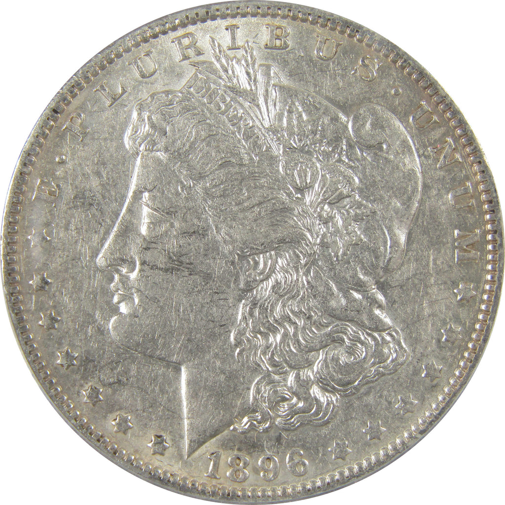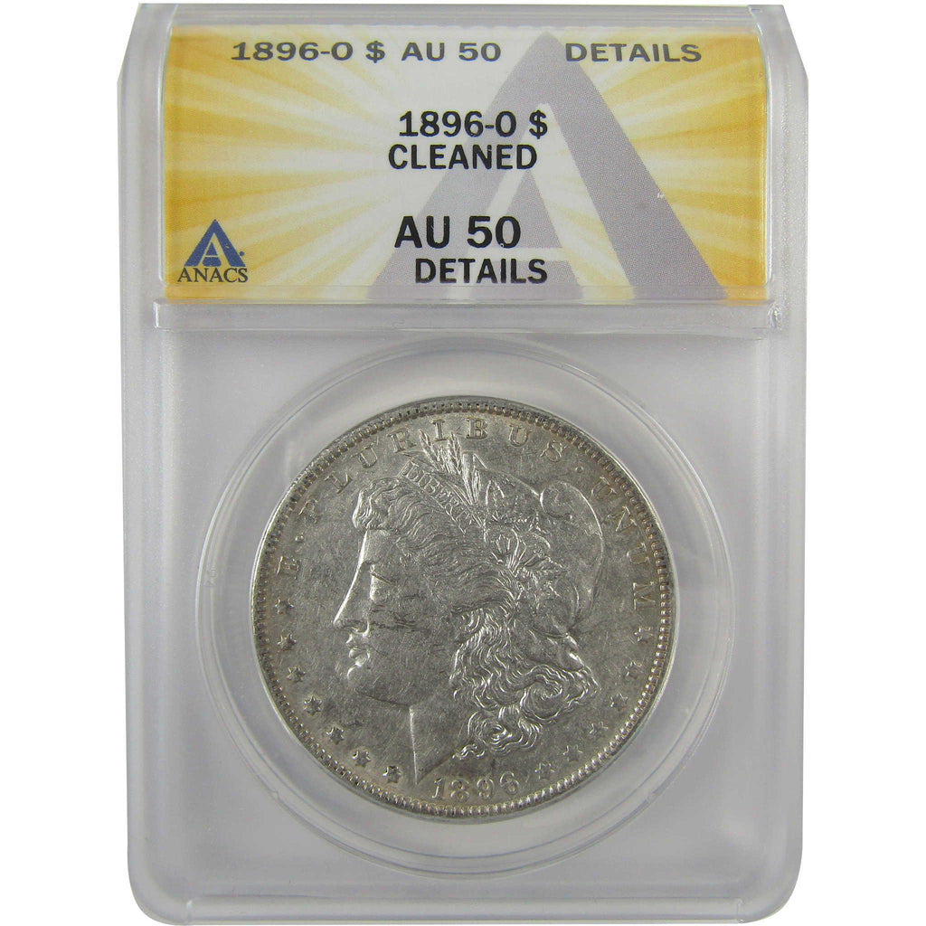 A genuine 1896 O Morgan Silver Dollar Coin, graded and certified AU 50 Details by ANACS. Contains 90% Silver. Cleaned