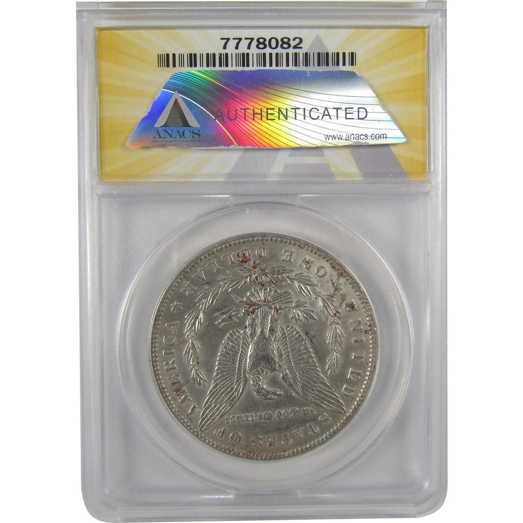 A genuine 1896 O Morgan Silver Dollar Coin, graded and certified AU 50 Details by ANACS. Contains 90% Silver. Harshly Cleaned