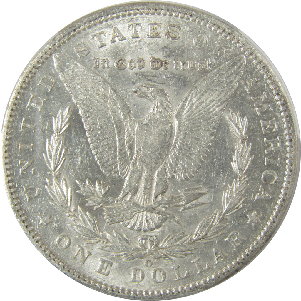 A genuine 1896 O Morgan Silver Dollar Coin, graded and certified AU 53 by PCGS. Contains 90% Silver