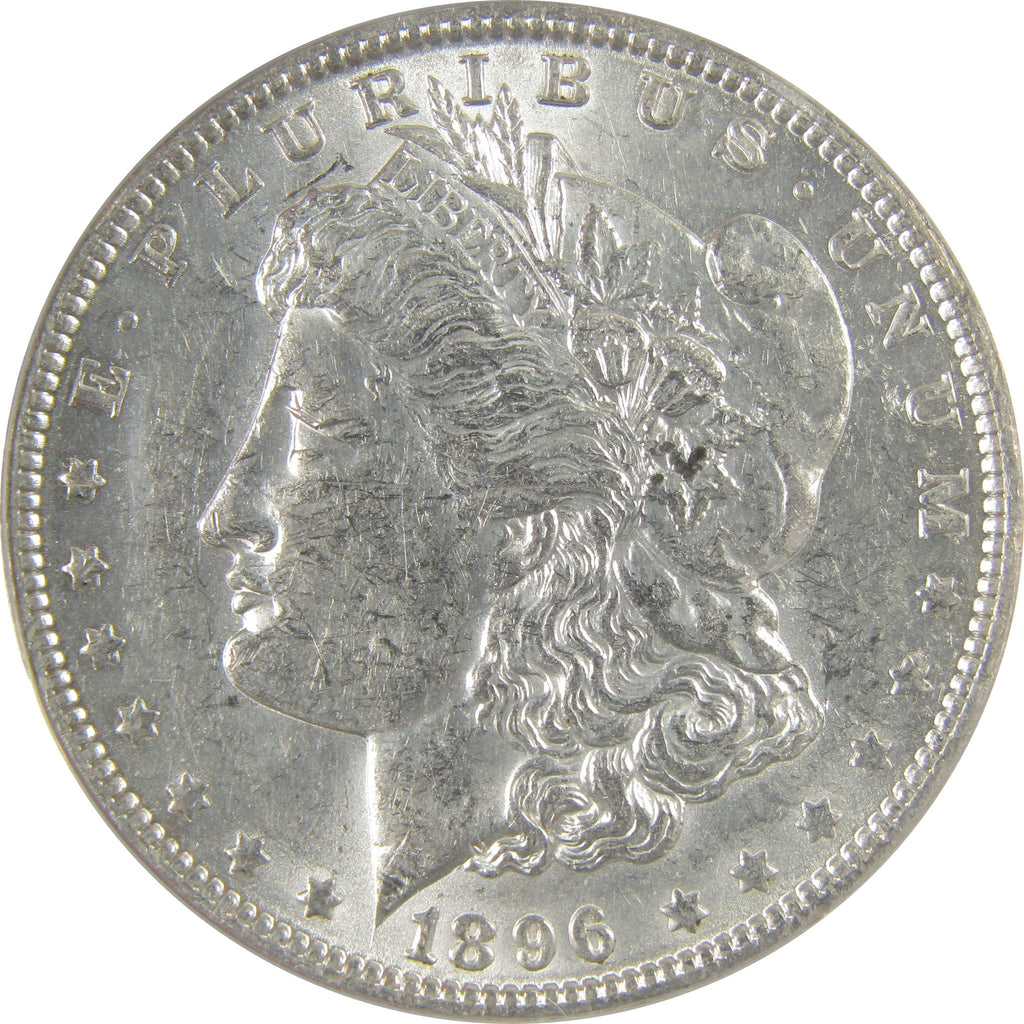 A genuine 1896 O Morgan Silver Dollar Coin, graded and certified AU 55 Details by ANACS. Contains 90% Silver. Cleaned