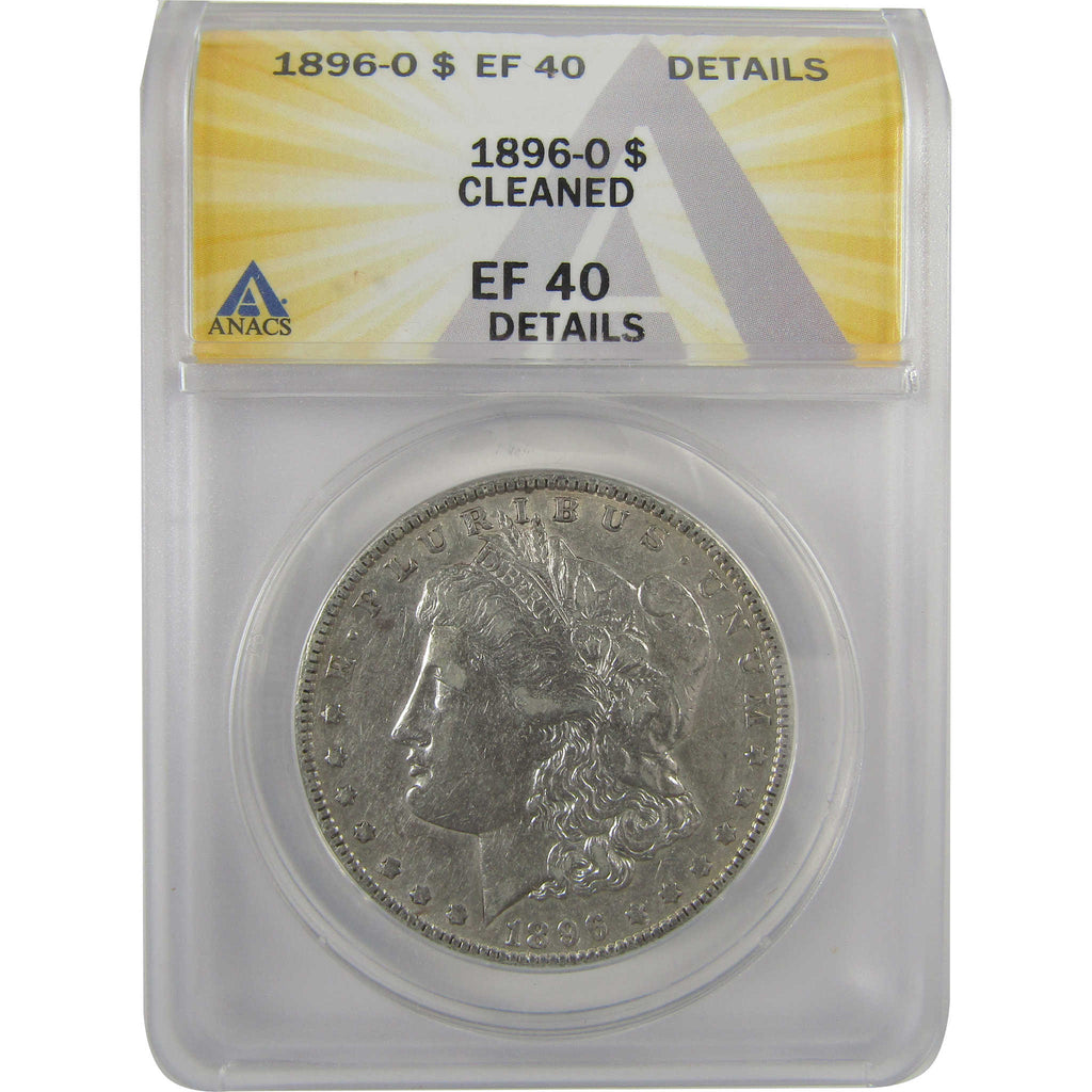 A genuine 1896 O Morgan Silver Dollar Coin, graded and certified EF 40 Details by ANACS. Contains 90% Silver. Cleaned