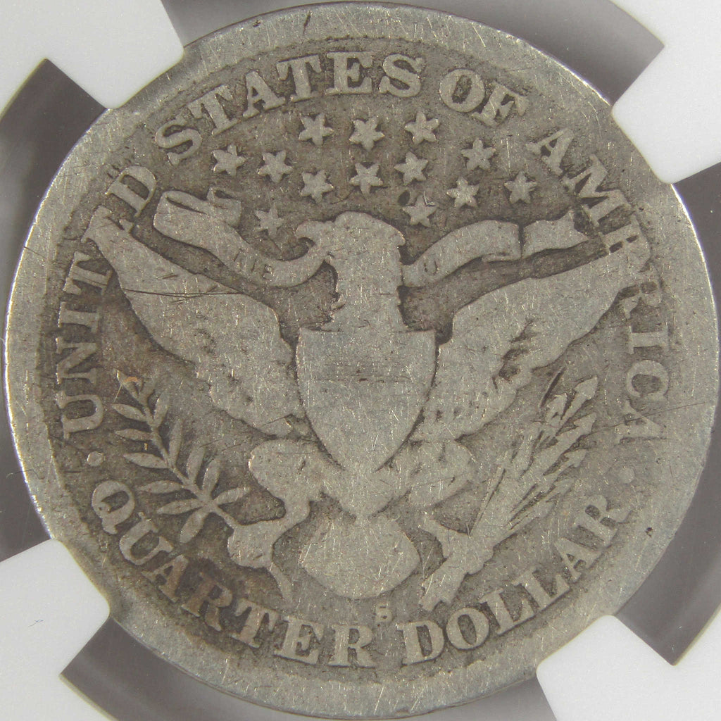 A genuine 1896 S Barber Silver Quarter Coin, graded and certified G Good Details by NGC. Contains 90% Silver. Scratches