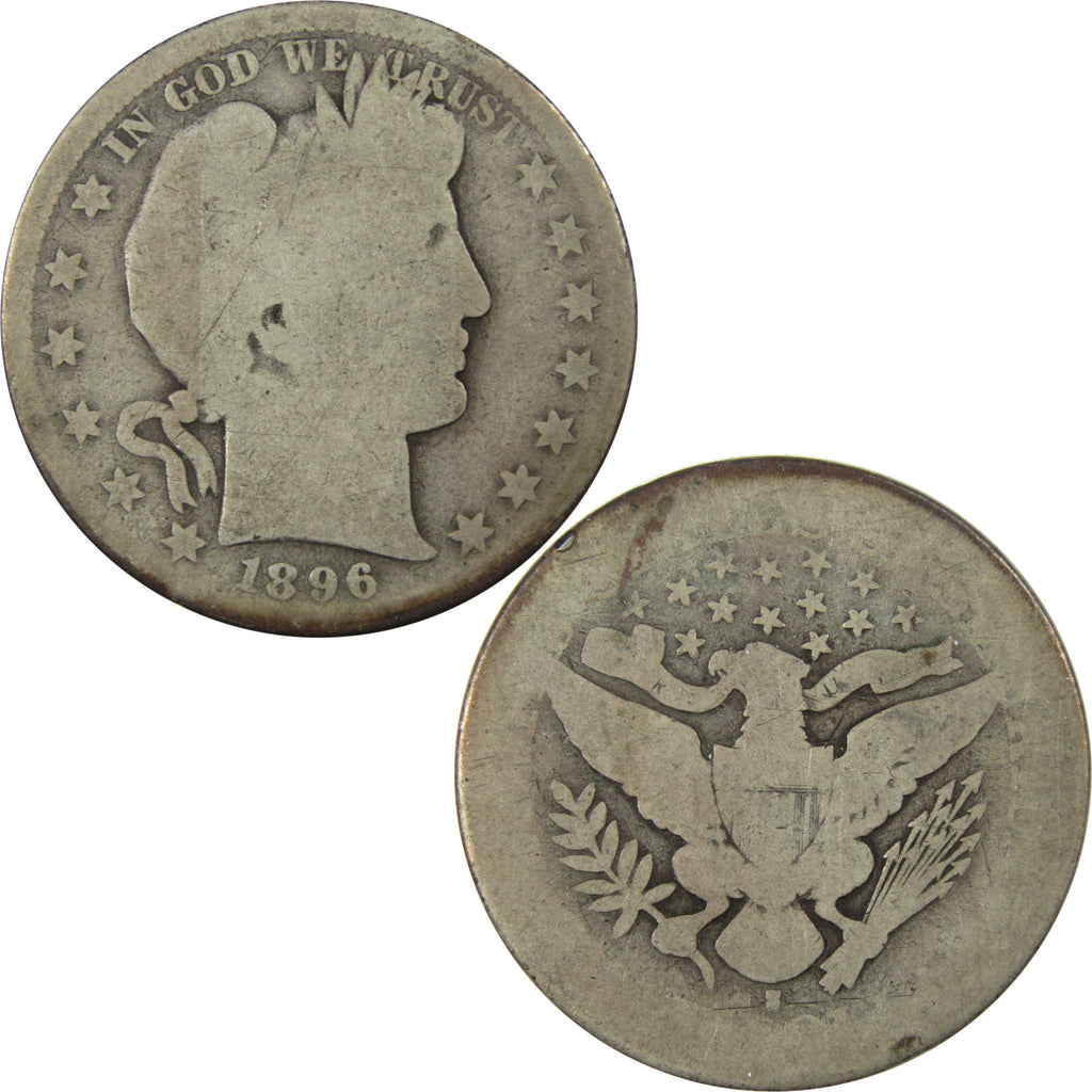 A genuine 1896 S Barber Silver Half Dollar Coin, in AG About Good Condition. Contains 90% Silver