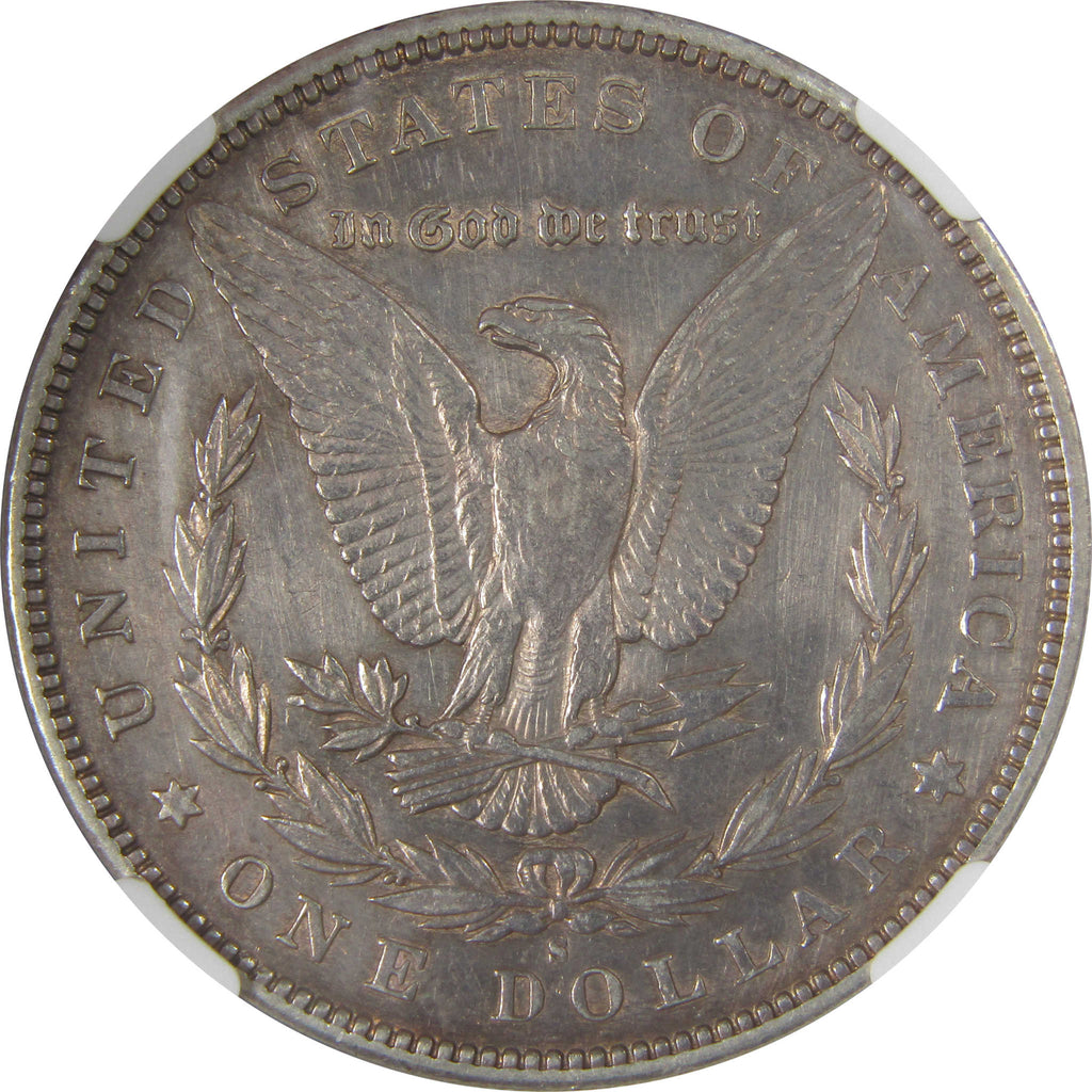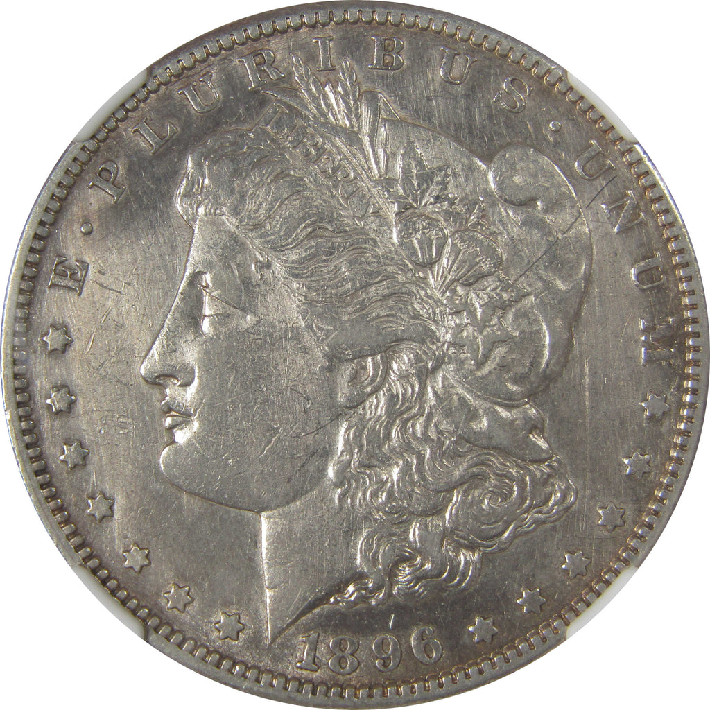 A genuine 1896 S Morgan Silver Dollar Coin, graded and certified AU Details by NGC. Contains 90% Silver. Cleaned