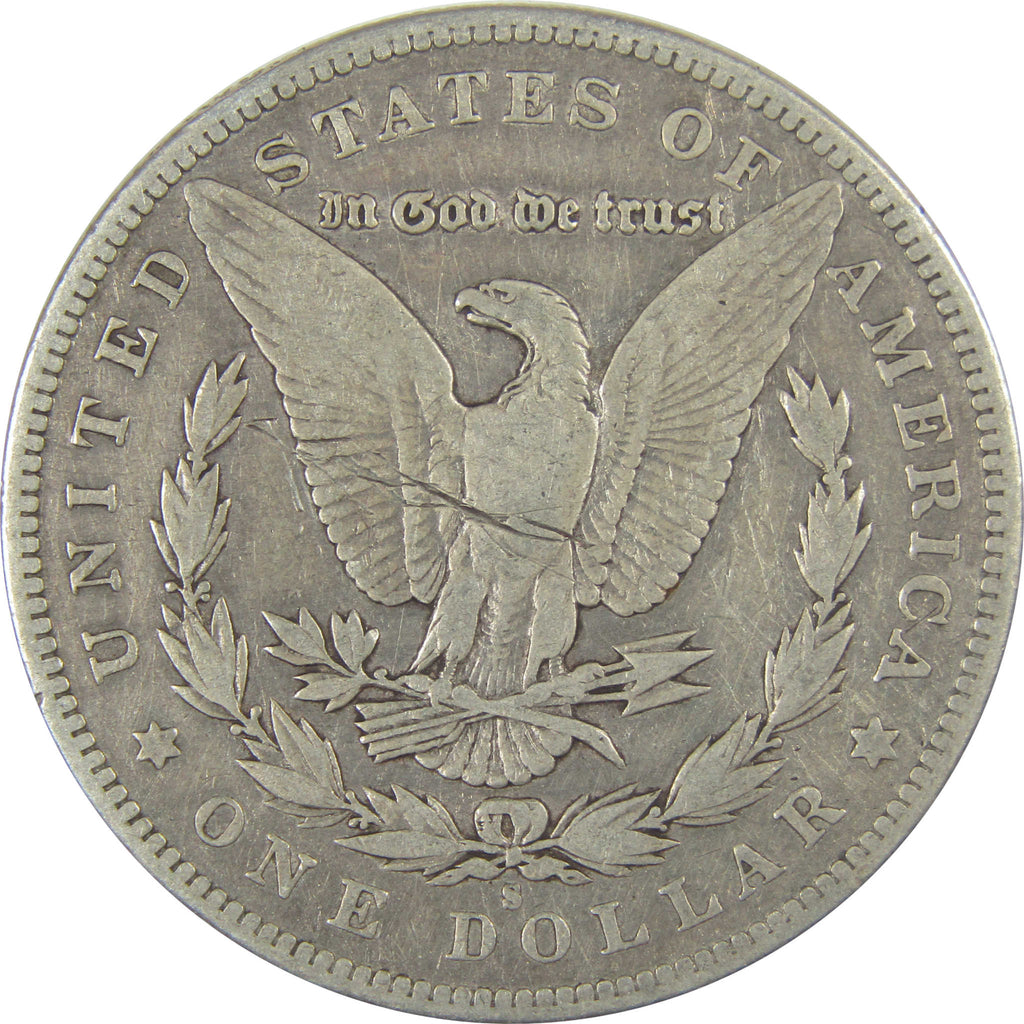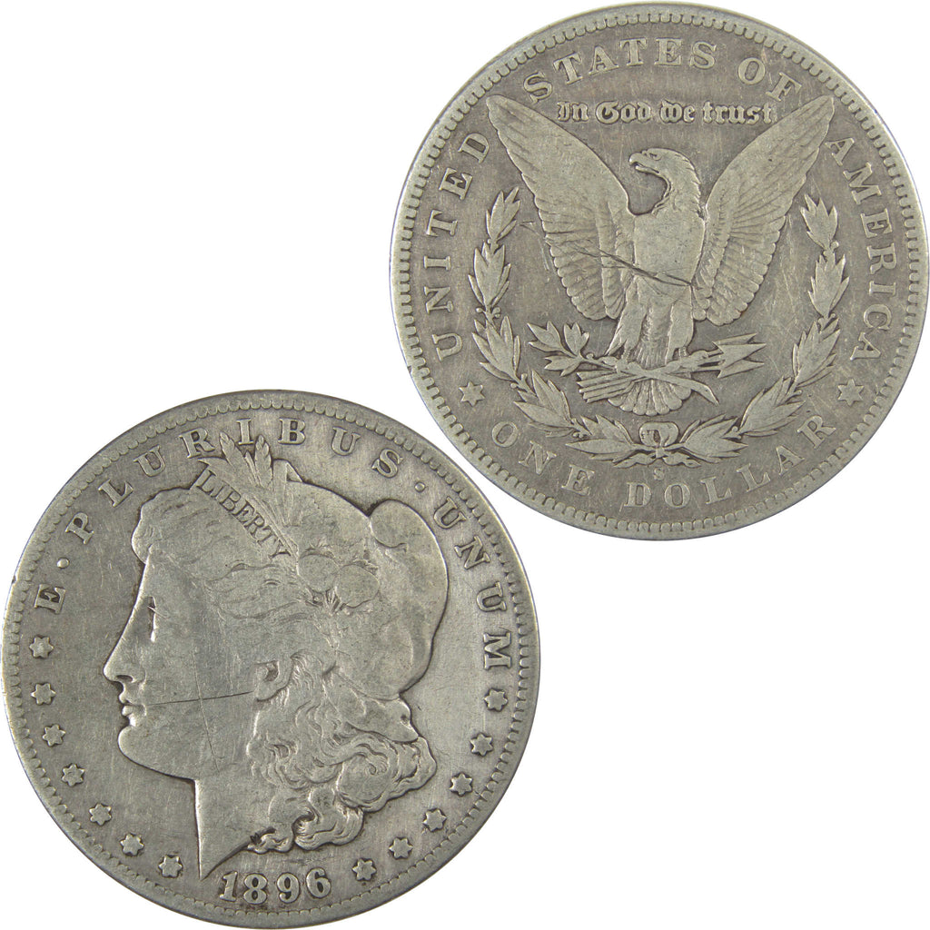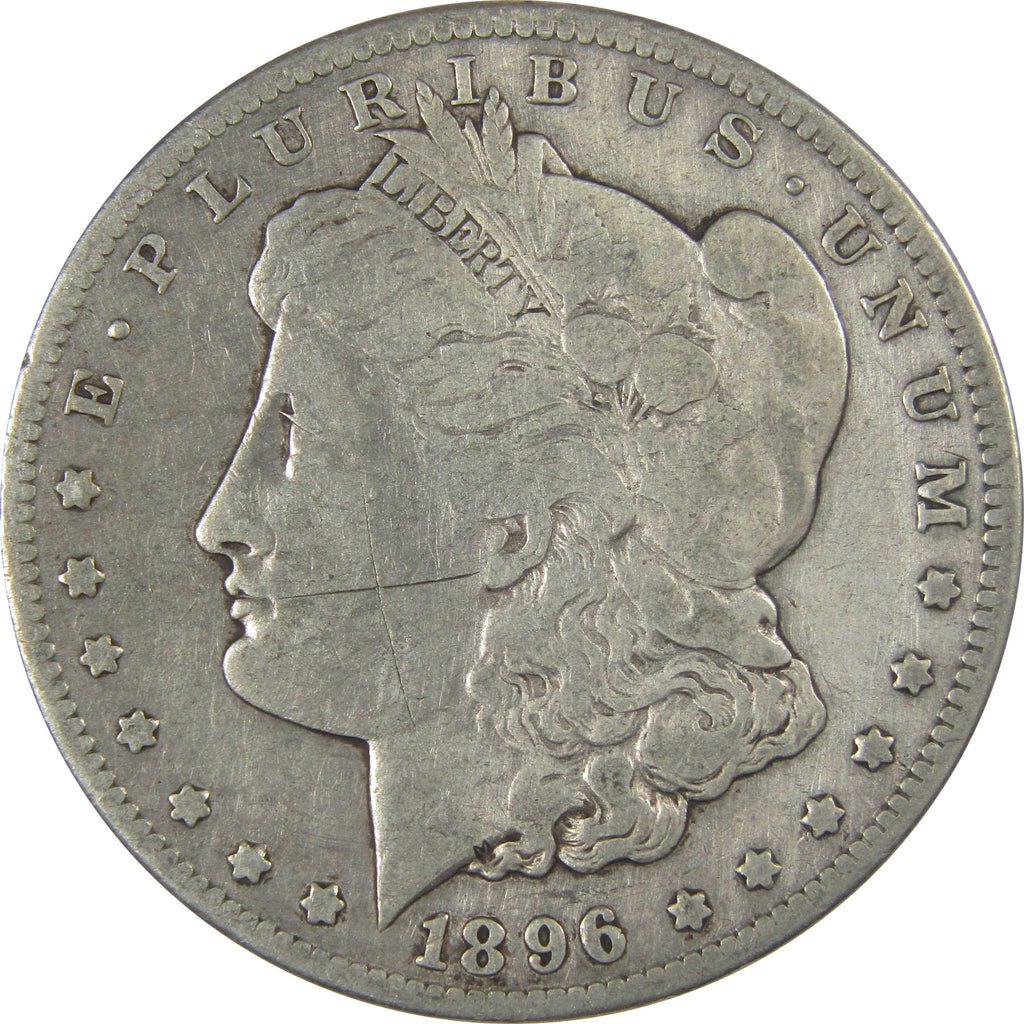 A genuine 1896 S Morgan Silver Dollar Coin, in F Fine Details Condition. Contains 90% Silver. Damaged