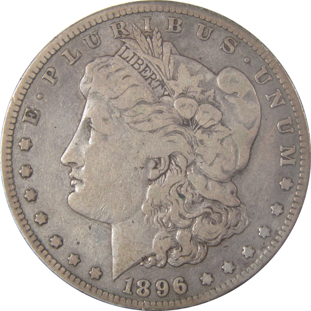 A genuine 1896 S Morgan Silver Dollar Coin, in F Fine Condition. Contains 90% Silver