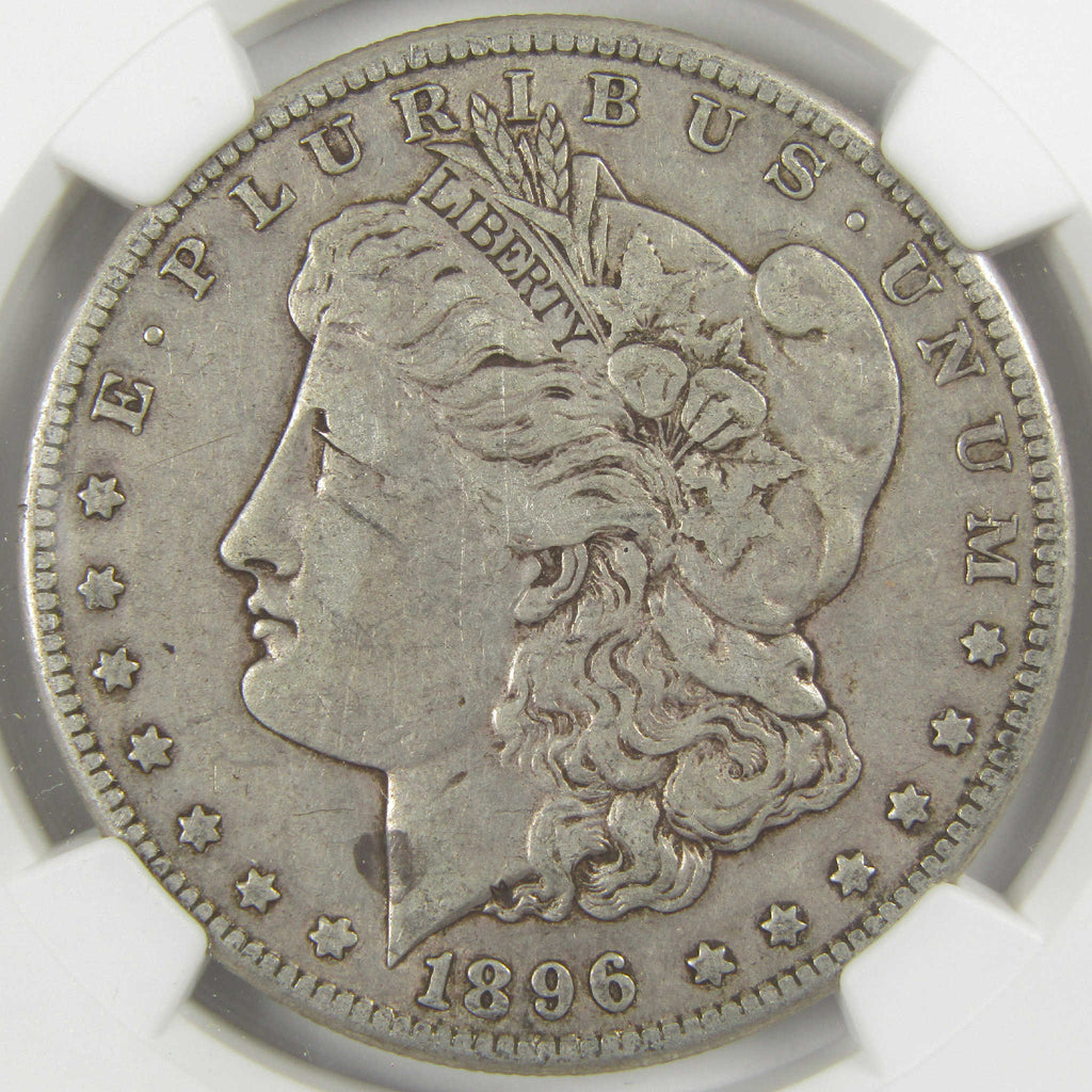 A genuine 1896 S Morgan Silver Dollar Coin, graded and certified VF 30 by NGC. Contains 90% Silver