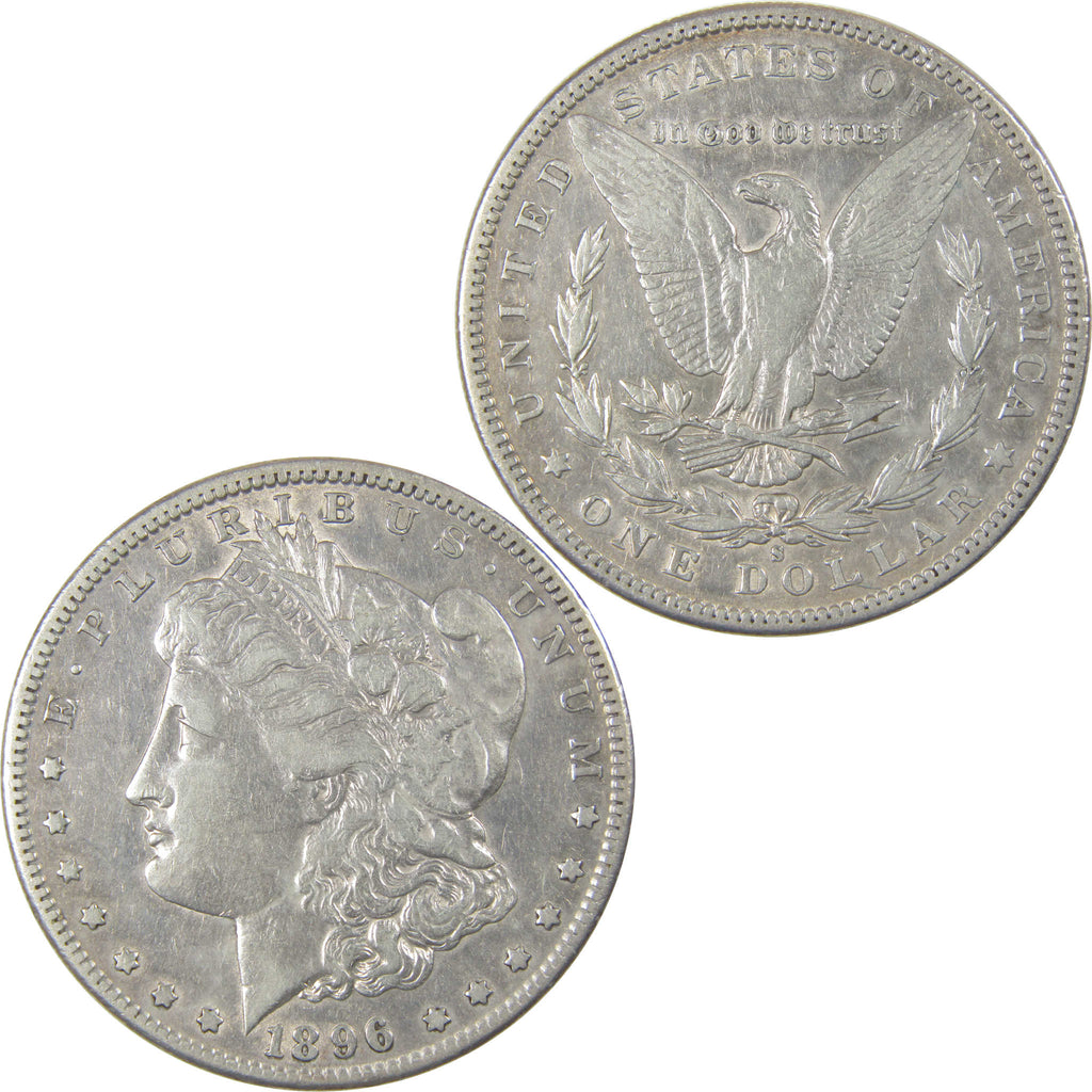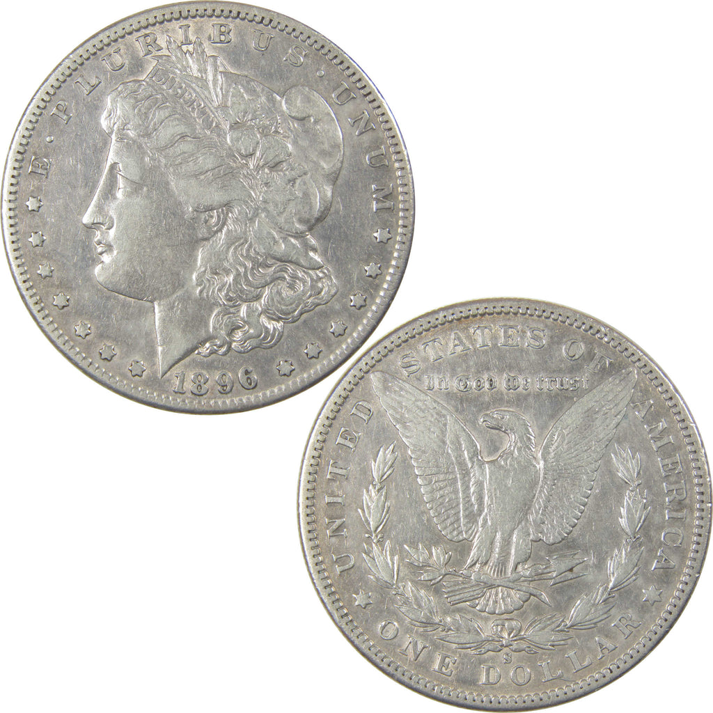 A genuine 1896 S Morgan Silver Dollar Coin, in VF Very Fine Details Condition. Contains 90% Silver. Cleaned
