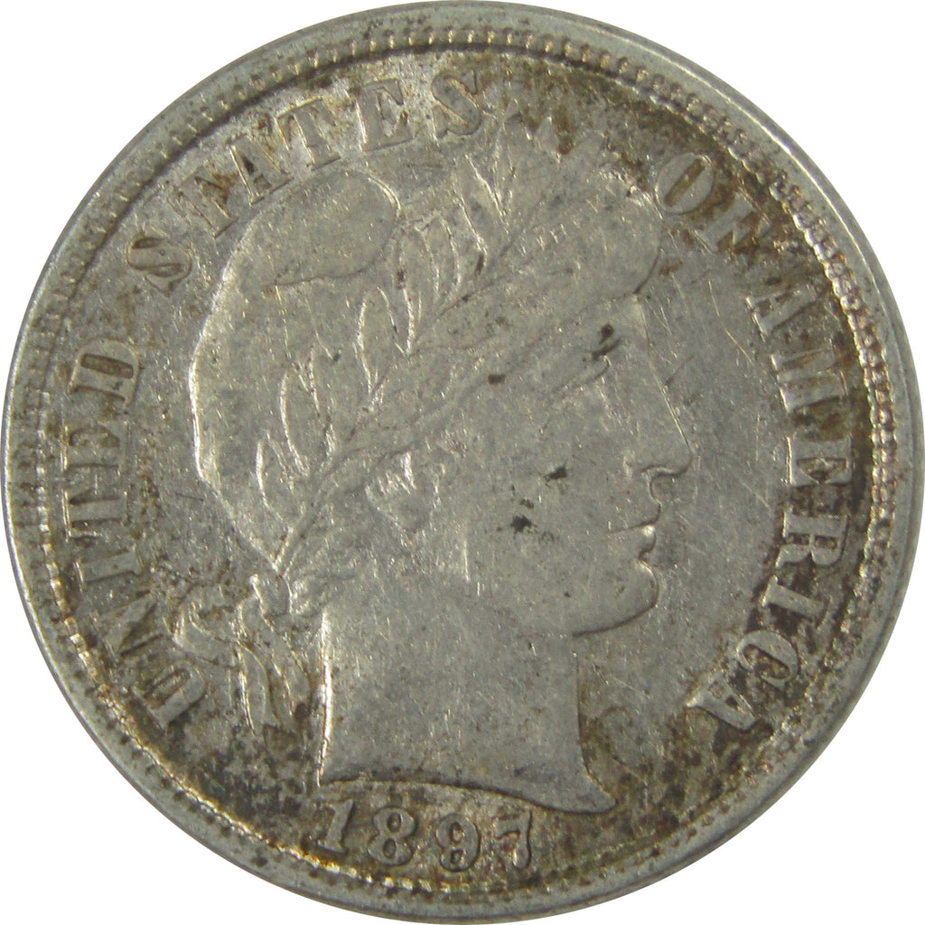 A genuine 1897 Barber Silver Dime Coin, in AU About Uncirculated Condition. Contains 90% Silver