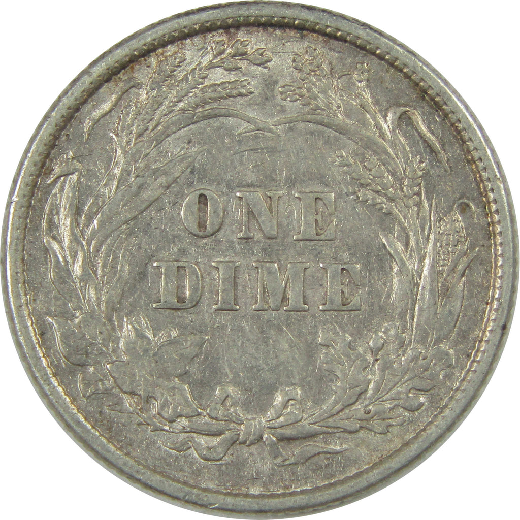 Known as the Barber dime after its designer, this classic Liberty Head dime was struck in 90% silver. Its obverse depicts Liberty facing right wearing a Phrygian cap and laurel wreath, while the reverse shows a wreath and the denomination ONE DIME.