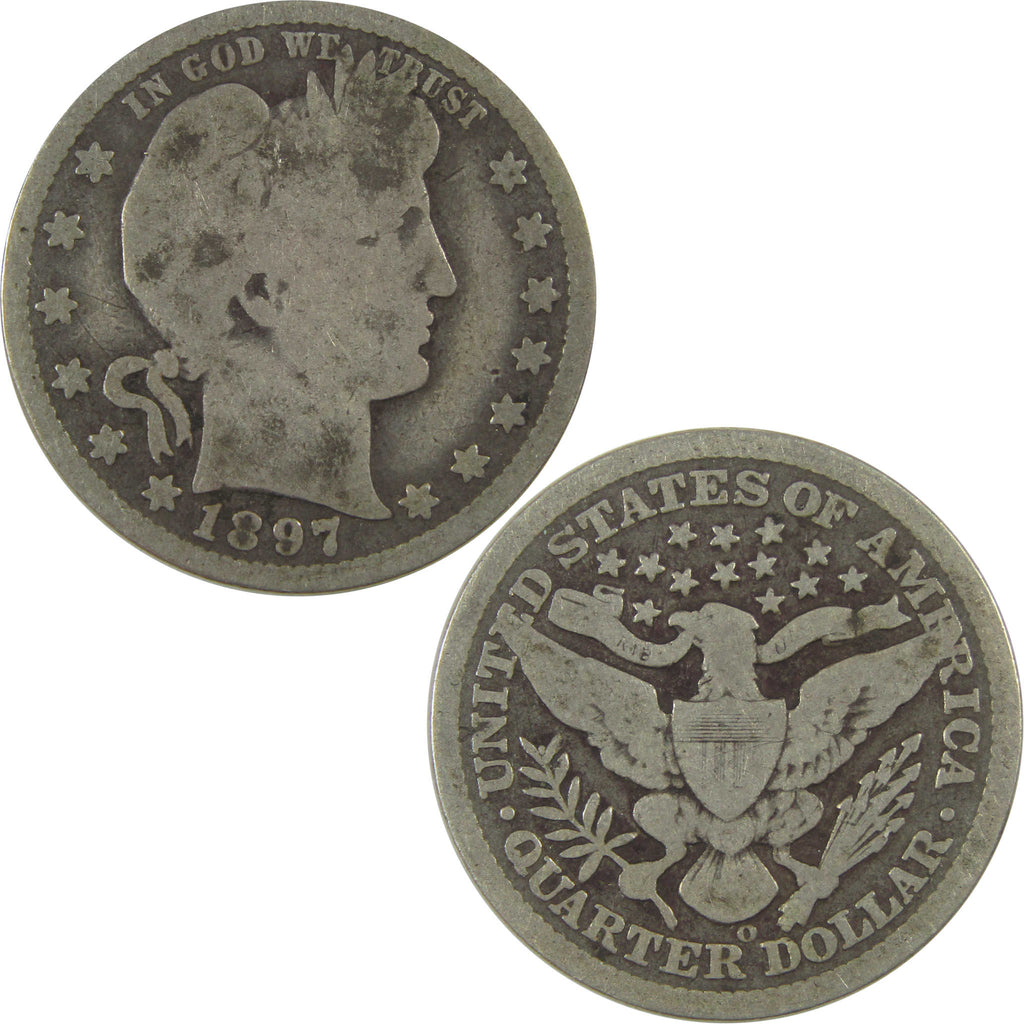 A genuine 1897 O Barber Silver Quarter Coin, in G Good Condition. Contains 90% Silver