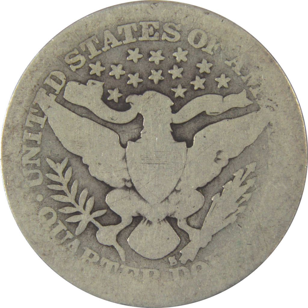Designed by Charles E. Barber, this 90% silver Liberty Head quarter (or Barber quarter) depicts Liberty wearing a laurel wreath and Phrygian cap with a band inscribed LIBERTY. The reverse bears an adaptation of the Great Seal of the United States.