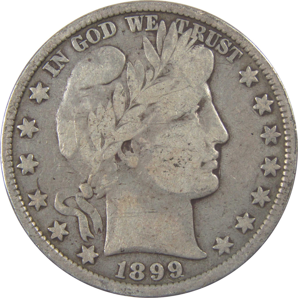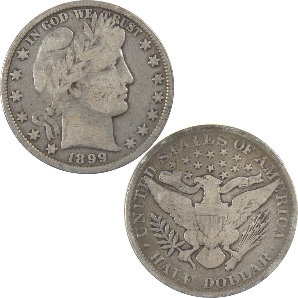 A genuine 1899 Barber Silver Half Dollar Coin, in VG Very Good Condition. Contains 90% Silver