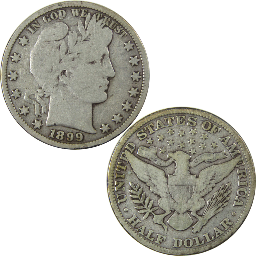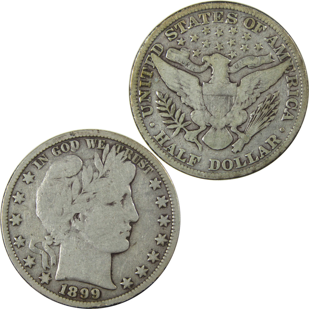 A genuine 1899 Barber Silver Half Dollar Coin, in VG Very Good Condition. Contains 90% Silver