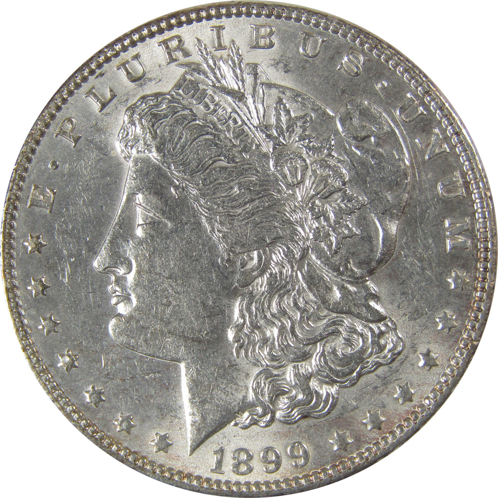 A genuine 1899 Morgan Silver Dollar Coin, in AU About Uncirculated Condition. Contains 90% Silver