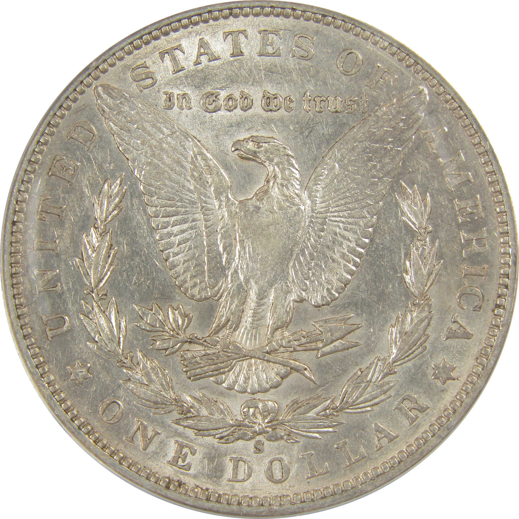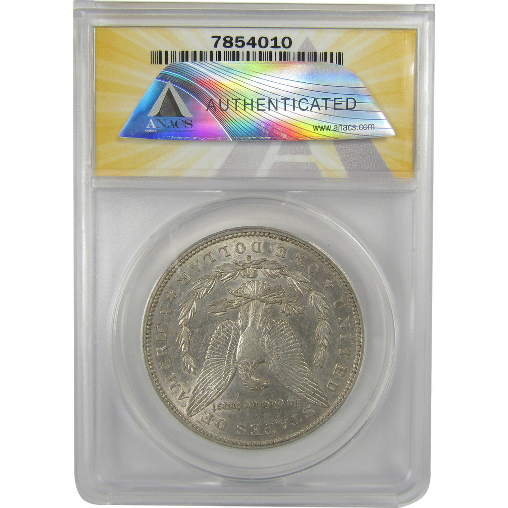 A genuine 1899 S Morgan Silver Dollar Coin, graded and certified AU 55 by ANACS. Contains 90% Silver