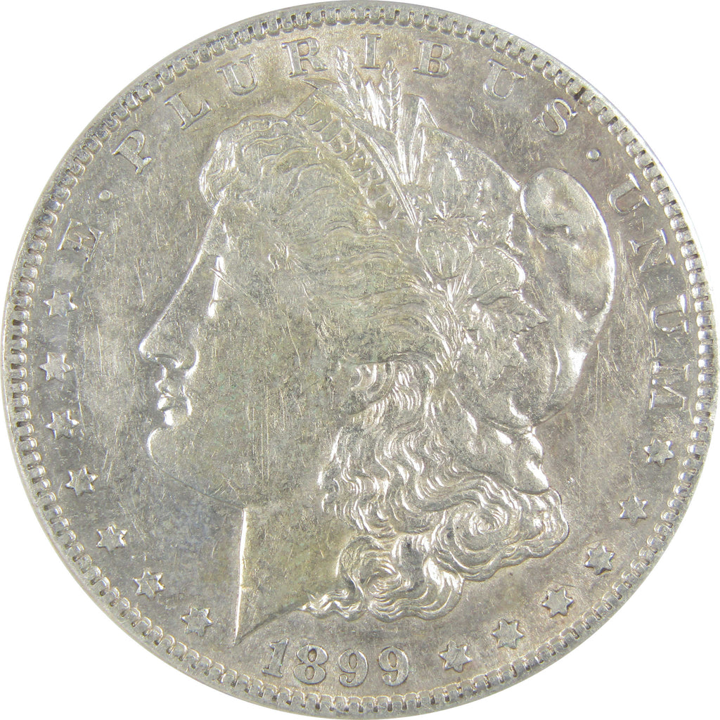A genuine 1899 S Morgan Silver Dollar Coin, graded and certified EF 40 Details by ANACS. Contains 90% Silver. Cleaned