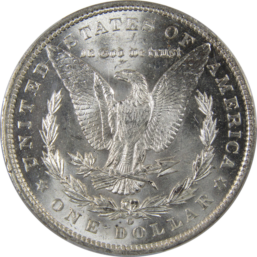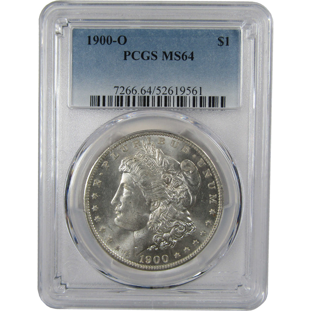 A genuine 1900 O Morgan Silver Dollar Coin, graded and certified MS 64 by PCGS. Contains 90% Silver
