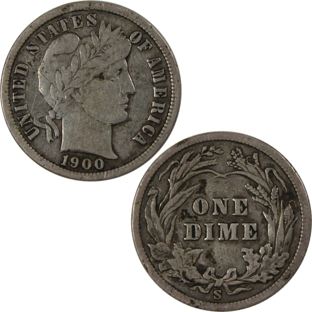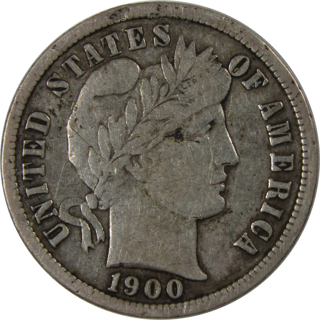 A genuine 1900 S Barber Silver Dime Coin, in F Fine Condition. Contains 90% Silver