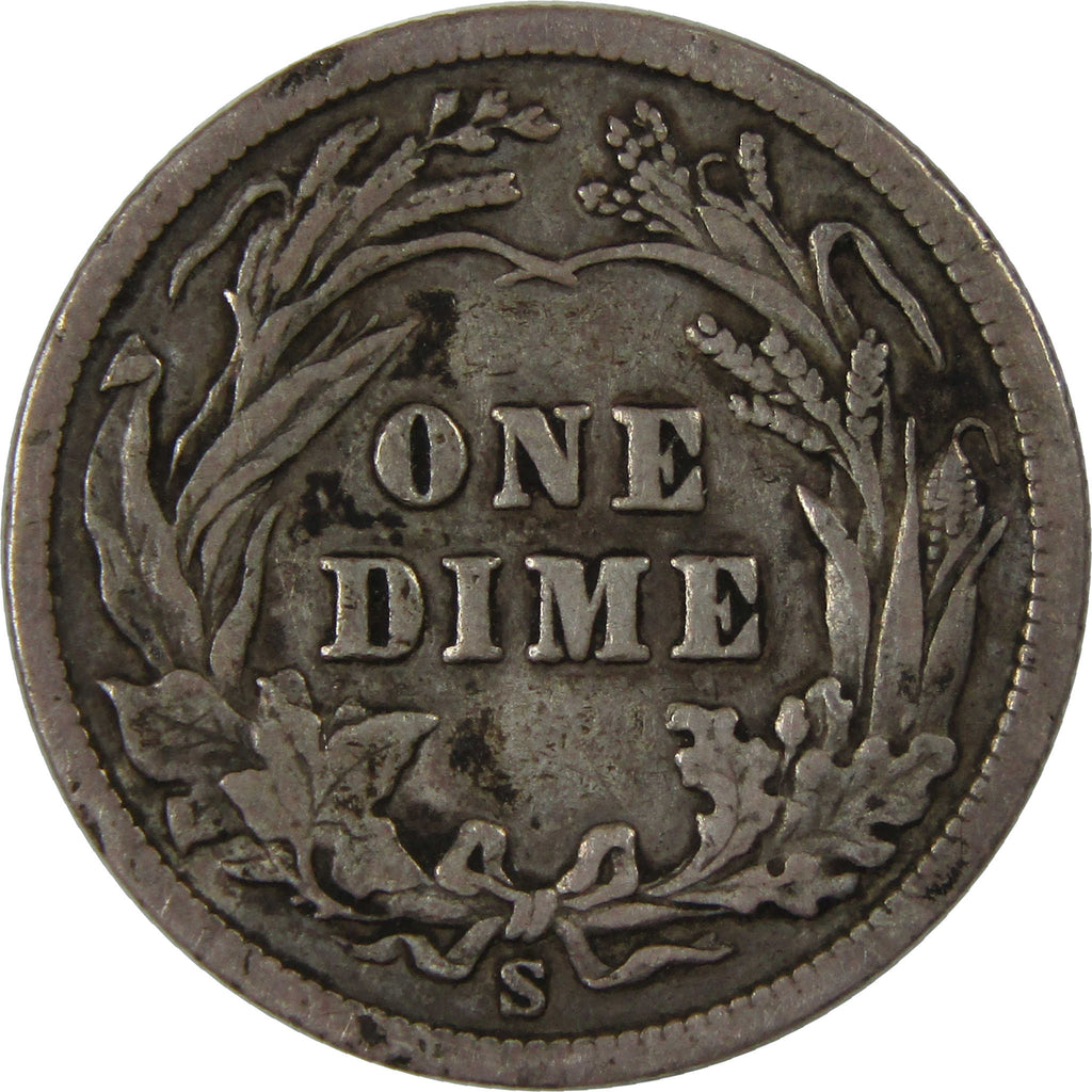 Known as the Barber dime after its designer, this classic Liberty Head dime was struck in 90% silver. Its obverse depicts Liberty facing right wearing a Phrygian cap and laurel wreath, while the reverse shows a wreath and the denomination ONE DIME.