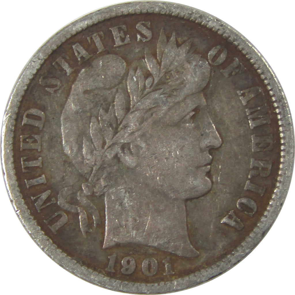 A genuine 1901 Barber Silver Dime Coin, in XF EF Extremely Fine Condition. Contains 90% Silver